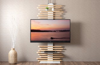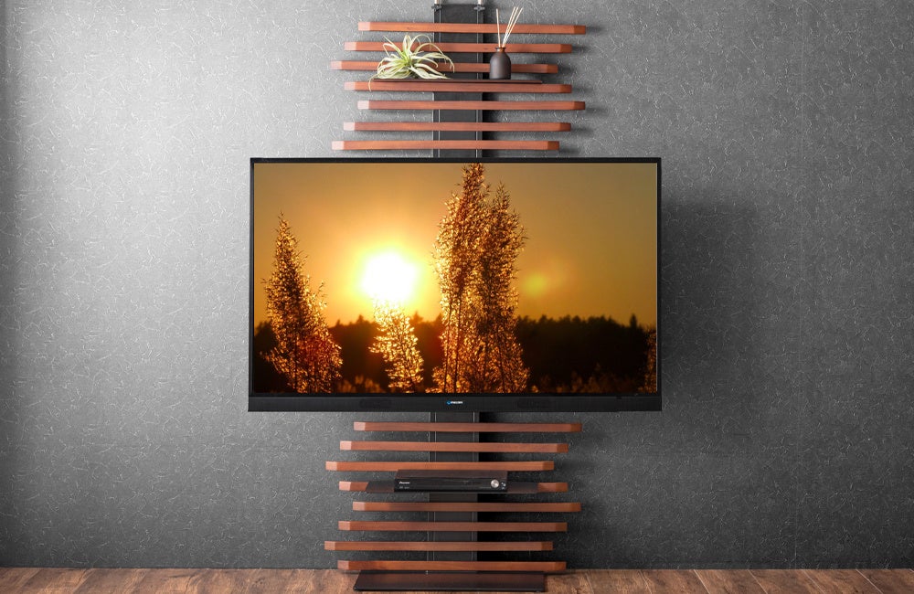 「テレビ上のデッドスペースが無垢材のアートに!?」天然木の装飾とディスプレイ収納が楽しめるテレビスタンドが登場