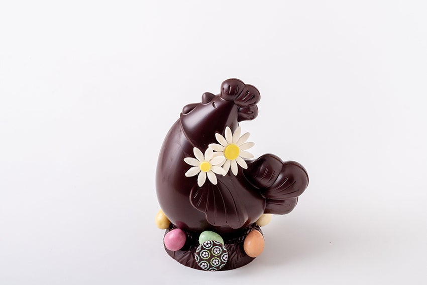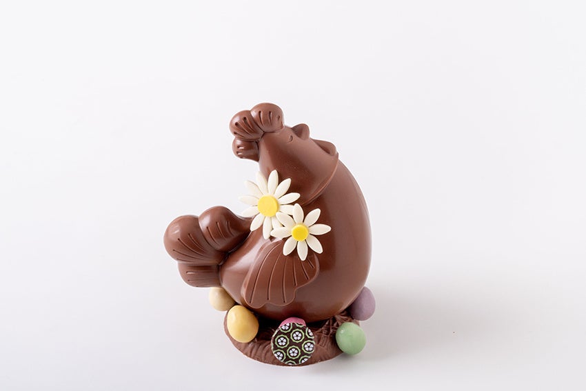 にわとりの庭をイメージしたビターとミルクのにわとり2匹。にわとりにはキャラメルのパールクラッカンとカラフルエッグが入っています。