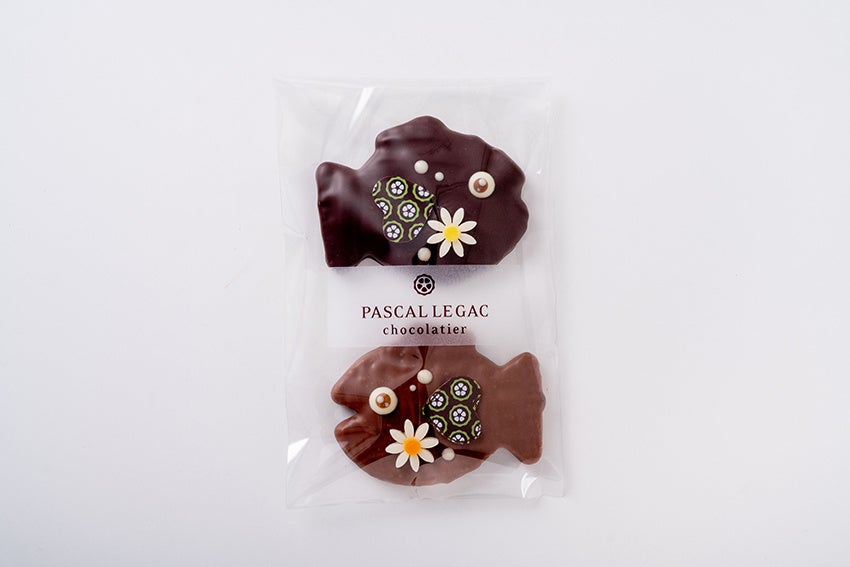 チョコチップ入りの魚の形のサブレ(ビター1匹、ミルク1匹)。