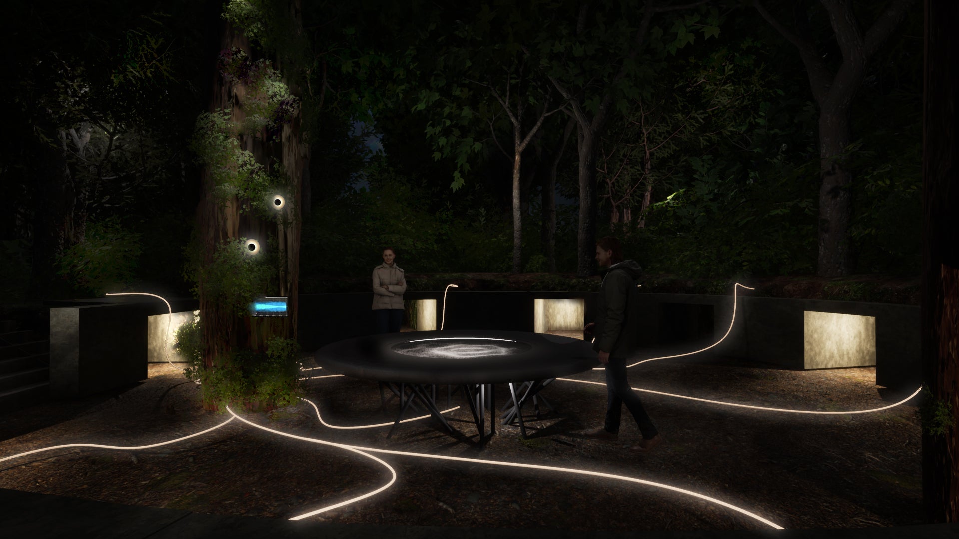 この作品は樹のうちにひそむ振動や音を拡張し、樹と人との間に新しい感覚的な接点を作る試みである。