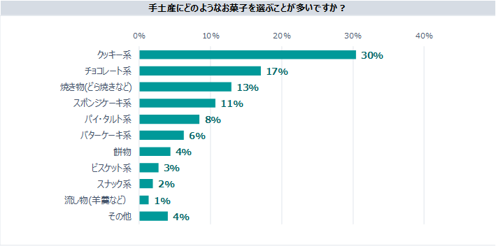 「手土産にどのようなお菓子を選ぶことが多いですか?」とアンケートした結果、1位は「クッキー系」でした。