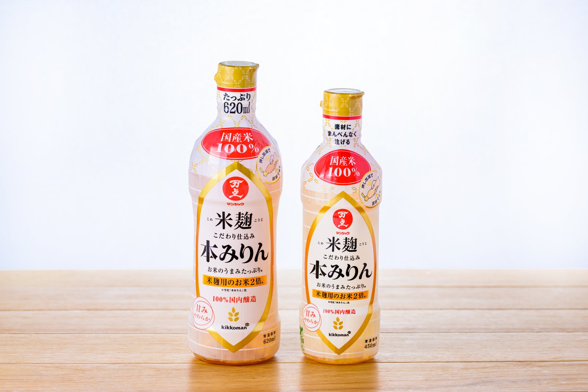 サイズは450mlと620mlの2種類展開。リサイクル可能なPET素材の「やわらかボトル」入りで、片手で注げて量の調節が自在です。