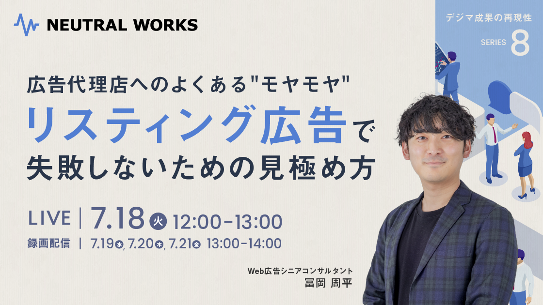 【7/18無料ウェビナー】広告代理店へのよくある”モヤモヤ” リスティング広告で失敗しないための見極め方