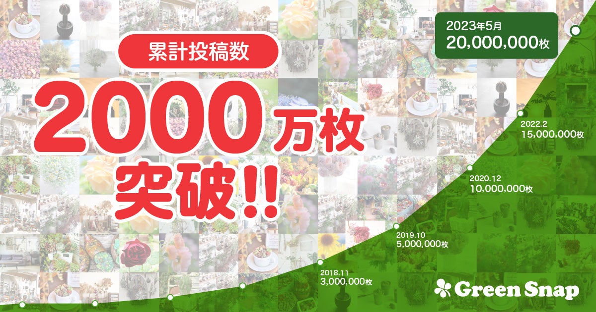 植物アプリ「GreenSnap」、累計投稿数2,000万枚突破!