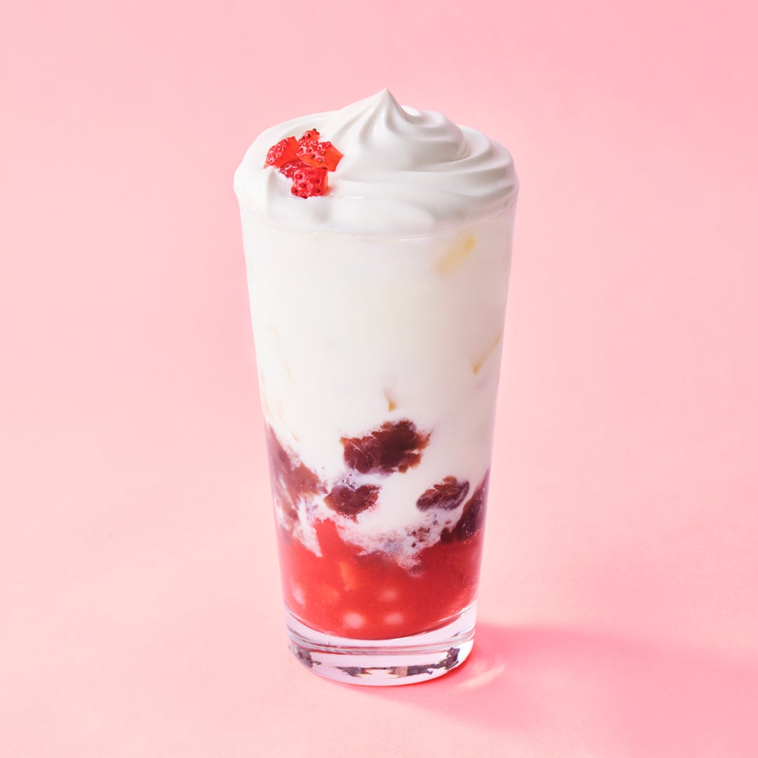 混ぜながら飲み進めていくと、「苺大福」を思わせる味わいや食感をお楽しみいただけます。