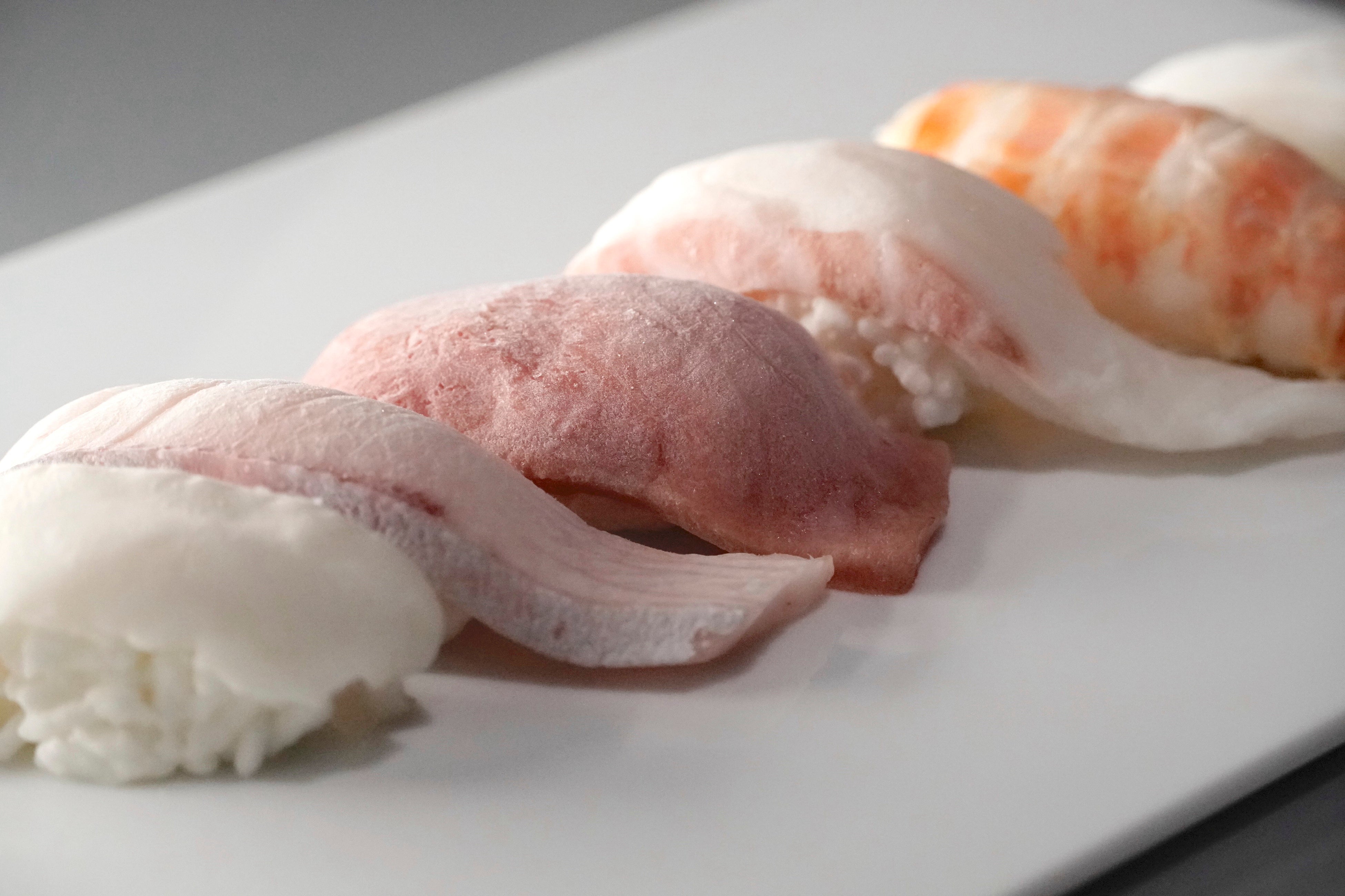 しかし、そこに冷凍寿司を取り入れようとしても、従来の冷凍技術ではシャリのパサつきやネタの変色が懸念されたり、オペレーション上必要な冷凍解凍が難しかったりと、活用したくても難しい状況が続いていました。これらの課題を解決し、高品質な寿司を提供したいお店・施設のニーズに応え、より多くのお客様に本格的な寿司を楽しんでいただくため、デイブレイクとちよだ鮨が協力。寿司業界で長年培われたちよだ鮨の職人技と急速冷凍業界のリーディングカンパニーであるデイブレイクの最先端冷凍技術および研究データをかけ合わせ、新たな冷凍寿司の開発に挑みました。