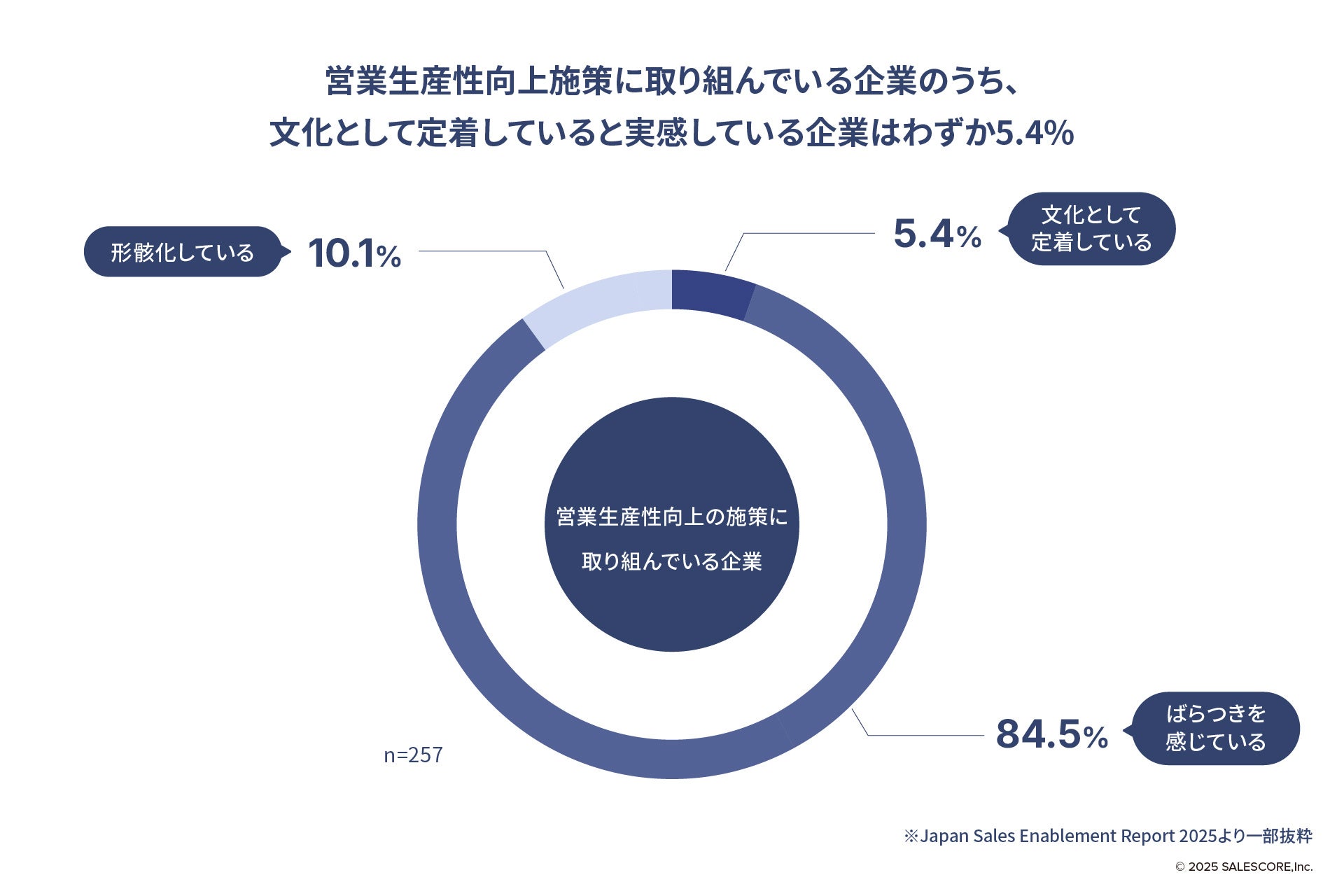 営業生産性向上に向けて取り組む企業のうち、文化として定着している企業は5.4%という調査結果(※1)があります。