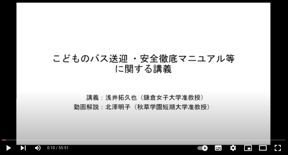 こどものバス送迎における安全管理研修(未就学児施設向け):https://youtu.be/LlE-XU7Cz3w
