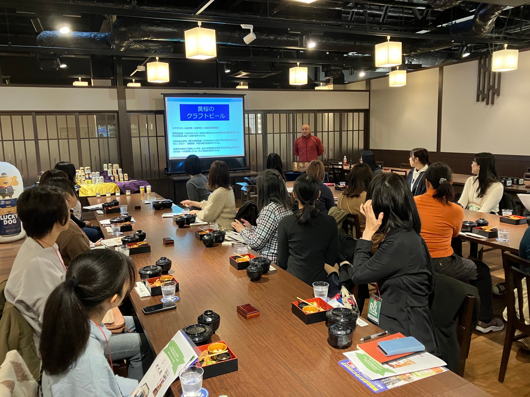 イベント当日は京都・中書島駅に集合した参加者を黄桜のシャトルバスでお迎えして、見学ツアーからスタート。酒どころの伏見にある「黄桜 伏水蔵」は、黄桜が手がける日本酒造りと地ビール造りを同時に見学できる蔵で、醸造の歴史と技術に触れながら、酒造りの奥深さを学んでいただきました。見学の後は蔵の中に併設されたレストラン会場において、黄桜のヘッドブルワー 宮部芳男氏より商品紹介プレゼンテーションと「LUCKY HORSE(ラッキーホース)」「LUCKY SHIBA(ラッキーシバ)」「LUCKY DOG(ラッキードッグ)」の試飲を含む、イベント限定の特別メニューの試食を体験。その他日本酒やビールも、購入された方にご堪能いただきました。
