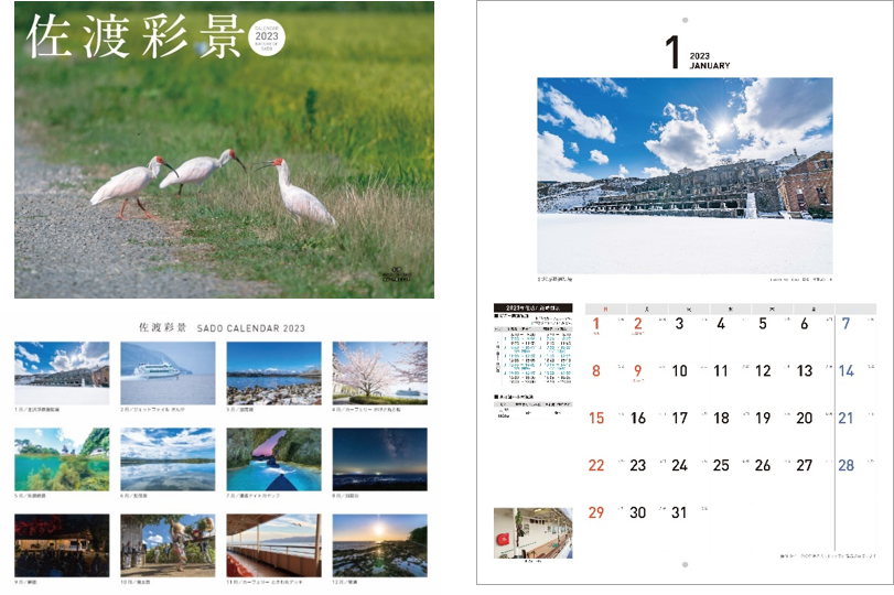 2023年版カレンダーには、毎年ご好評いただいている佐渡PRフォトグラファー・伊藤ヨシユキさん撮影による佐渡の四季折々の風景や伝統芸能の写真他、当社社員が撮影した船舶の写真を掲載いたしました。また、月ごとに佐渡汽船の時刻表も掲載されていますので、ダイヤの確認に大変便利です。