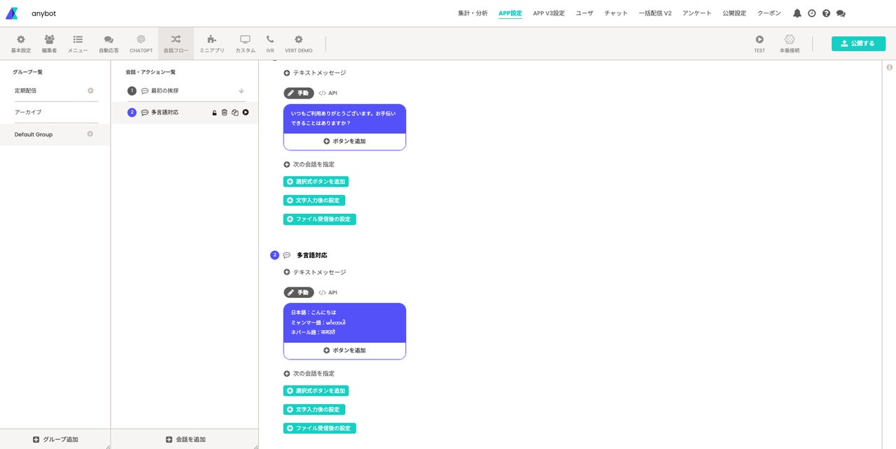 LINEマーケティングツールの「anybot」(エニーボット)は、管理画面の多言語化に対応しています