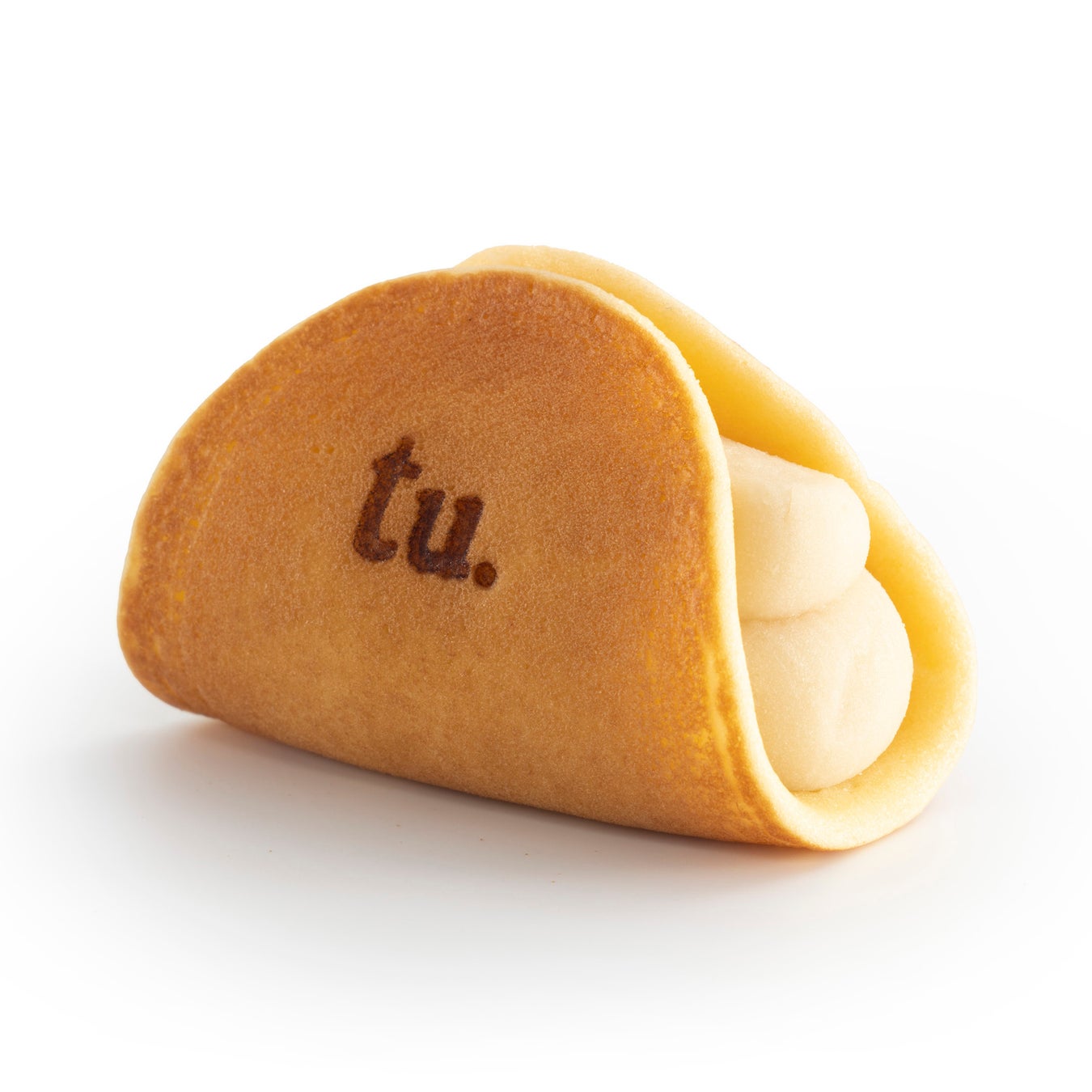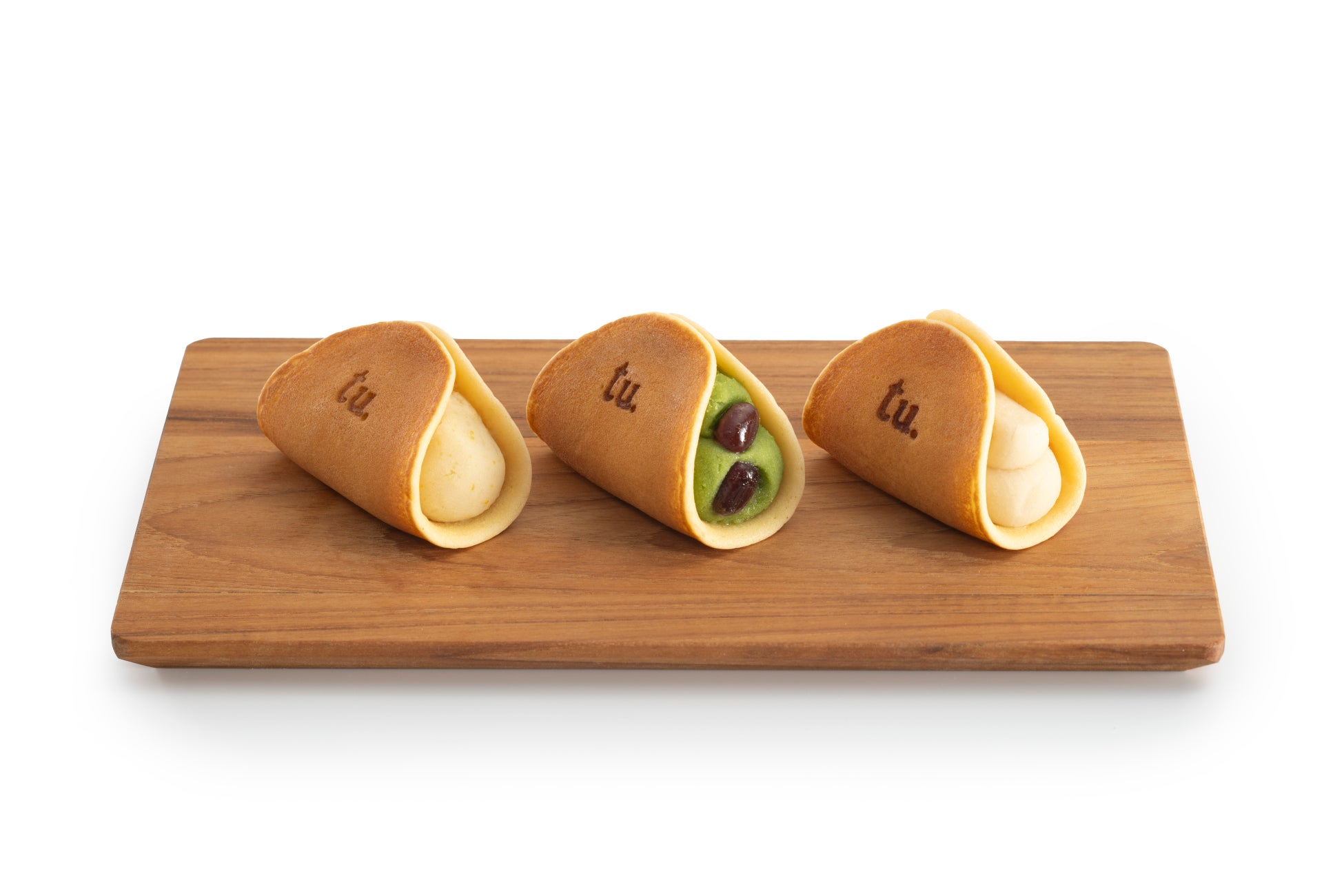 鶴屋吉信のベストセラー焼菓子「つばらつばら」をアレンジし、工場直送“ふわもち”食感の焼皮に白あん×マスカルポーネチーズを独自にブレンドした「マスカルポーネあん」をたっぷりと包んだ「生つばら」。東京店では、クリーミーで軽やかな味わいと素材をあわせた「プレーンバニラ」「抹茶」「柚子」の3つの風味をご提供いたします。