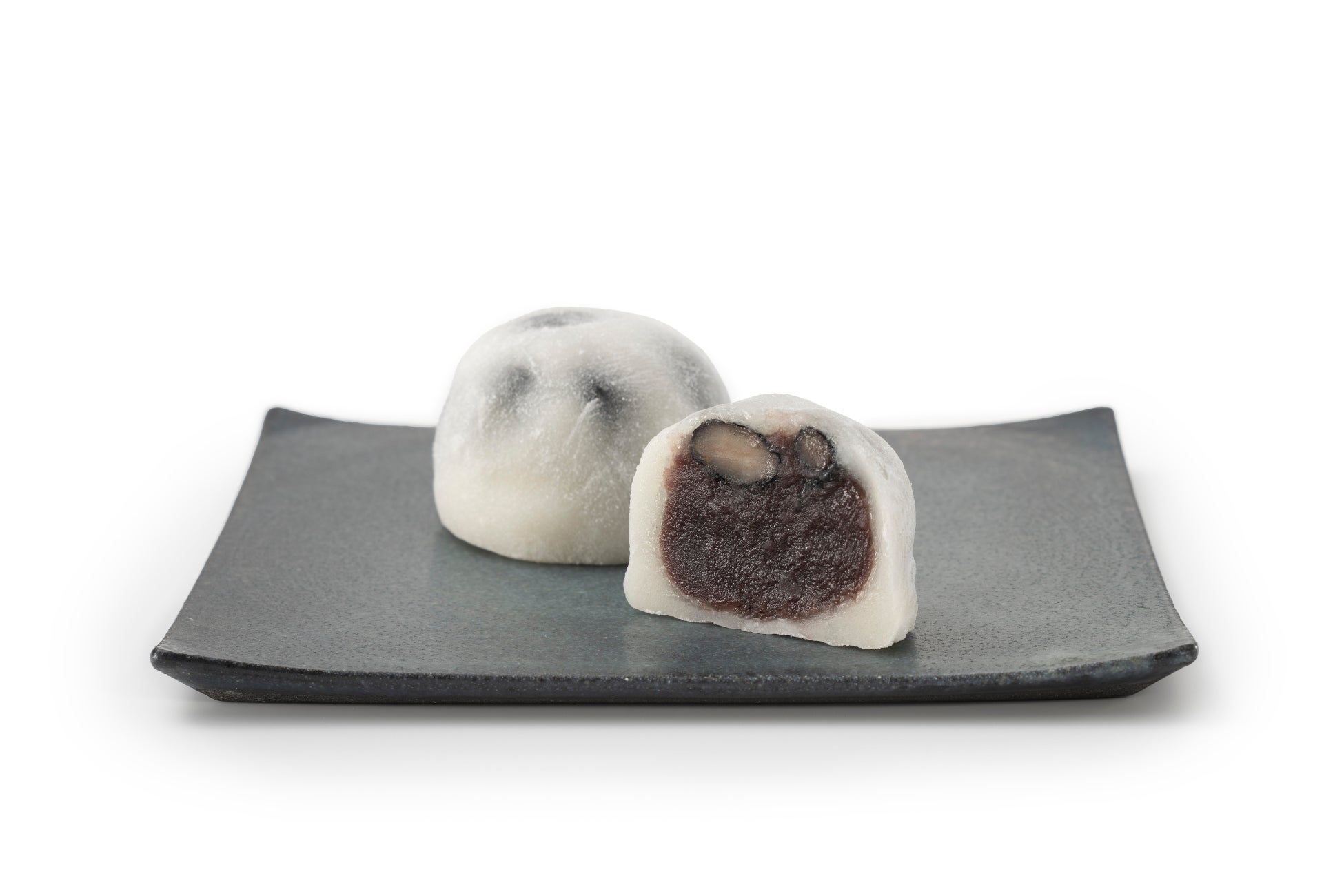 京都丹波産黒大豆(くろだいず)を使用。ほのかに塩味をきかせツヤツヤふっくらと炊き上げ、やわらかな求肥にこめて、まろやかなこしあんをたっぷり包みました。