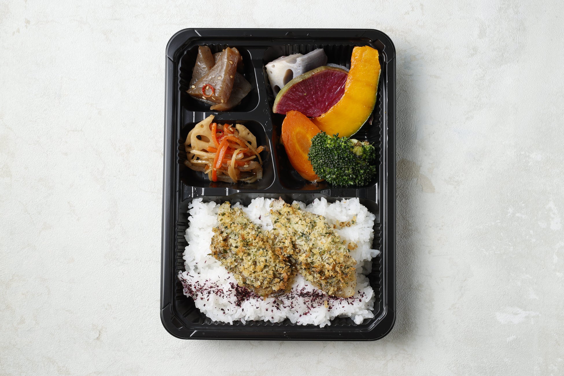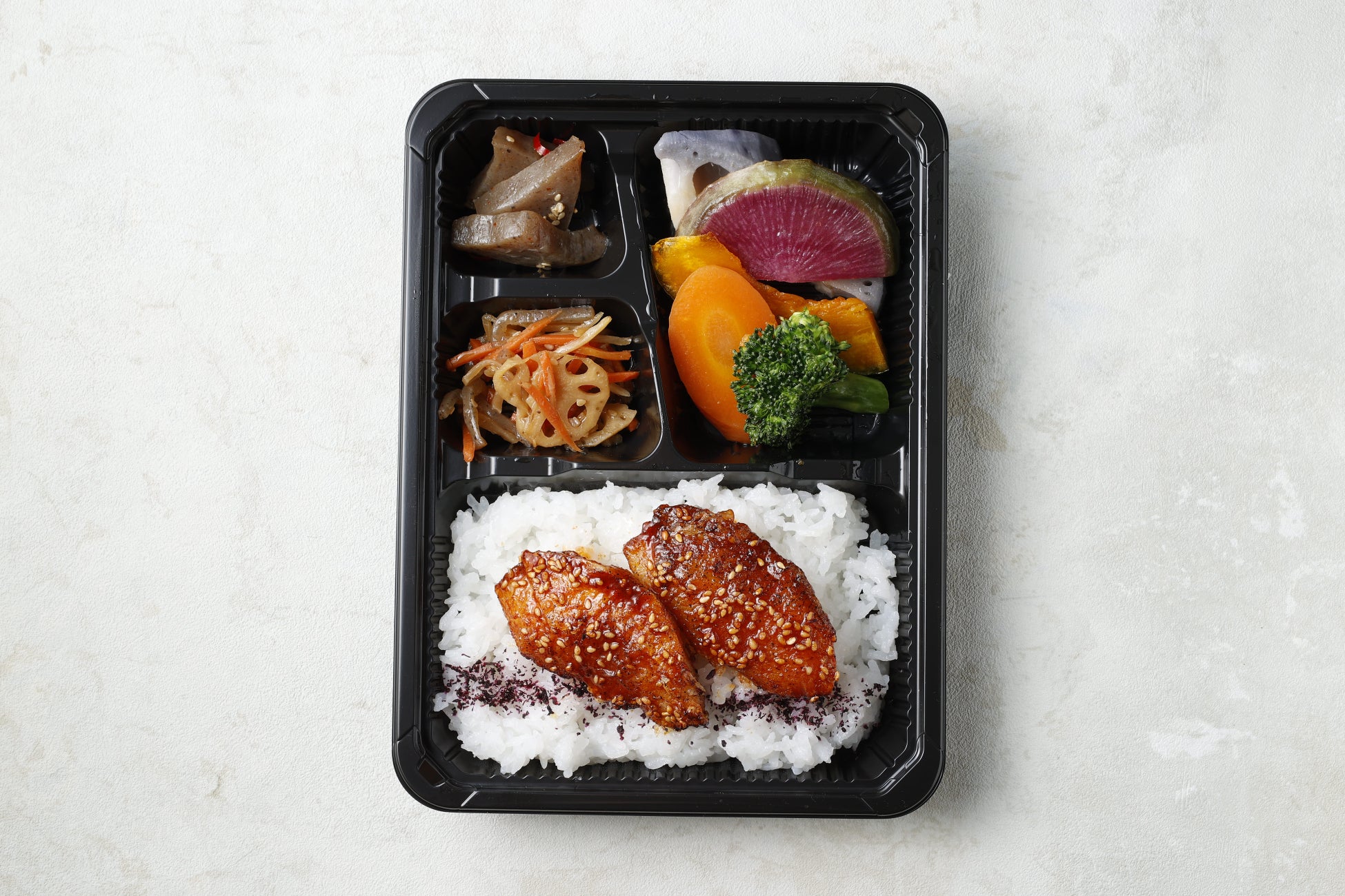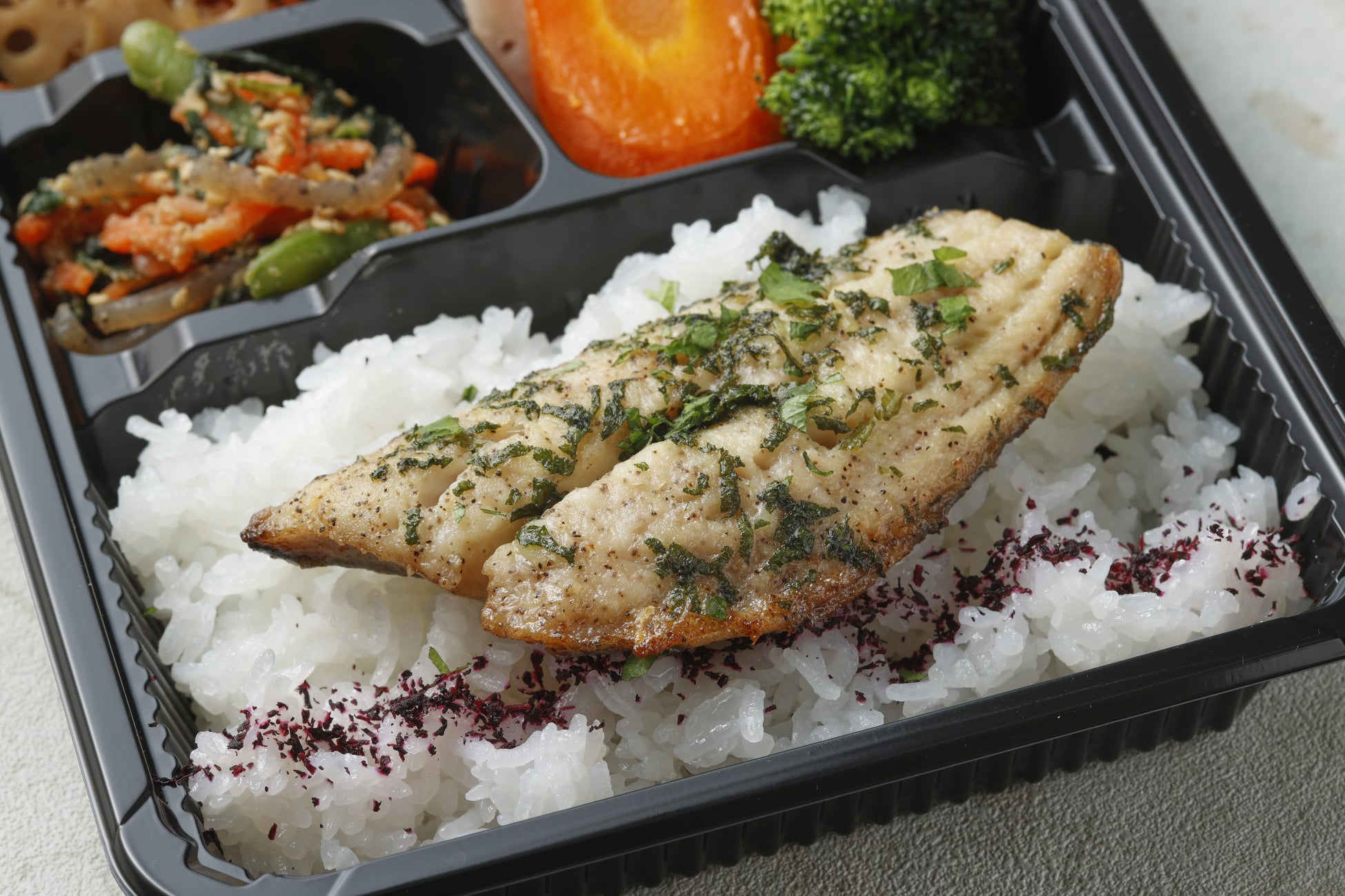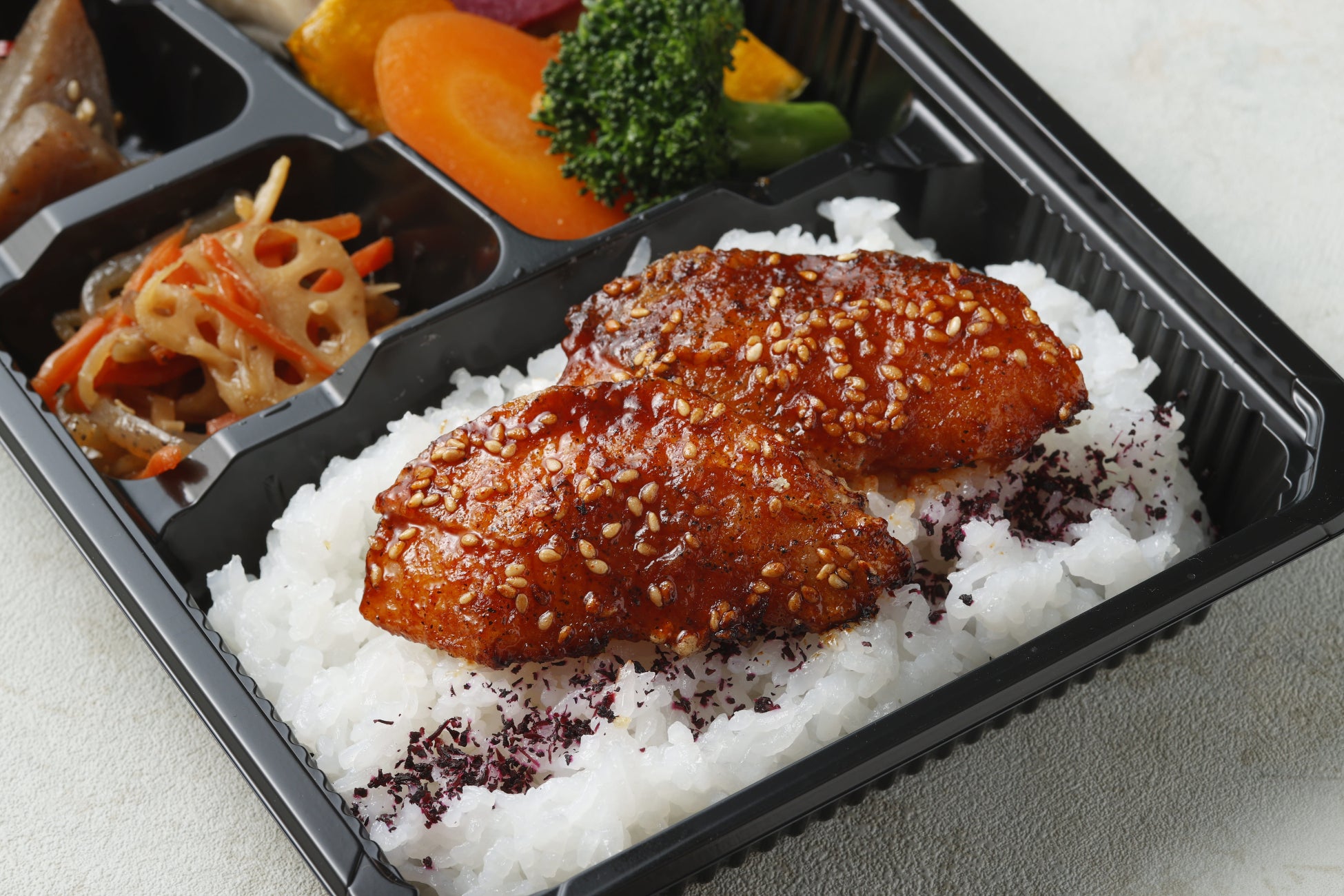 大ぶりなアラスカ産縞ほっけを甘辛いタレで蒲焼き風に仕上げたお弁当。ごはんとの相性はもちろん、誰もが何度でも食べたくなる味わいに仕上げました。