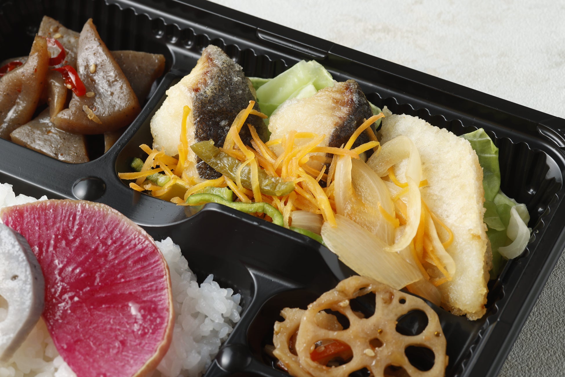 アラスカ産銀だらとアラスカ産アブラガレイ2種を味わえる贅沢なDX弁当。さっぱりとした親しみやすい味わいの南蛮漬けでお楽しみいただけます。