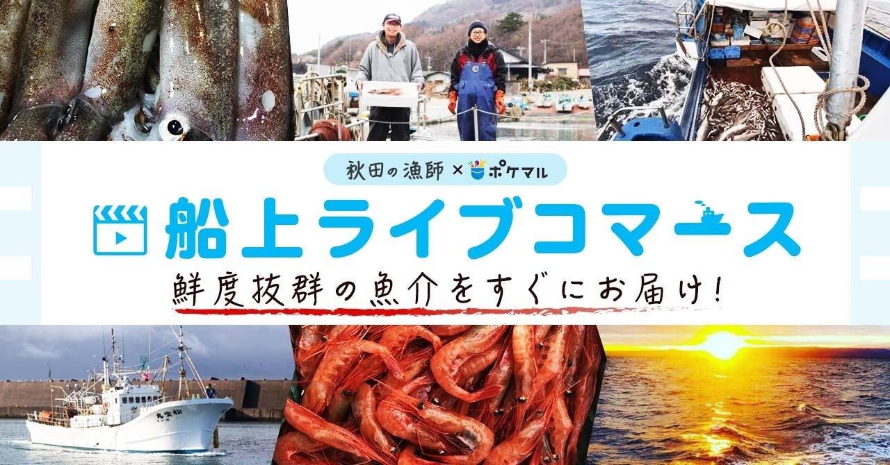 秋田県の漁師が、漁の様子を船上からライブ配信し、獲れた魚介類をライブコマース形式にてリアルタイムで紹介・販売します。ライブコマース内では、視聴者が参加できるコンテンツ「疑似せり体験」も用意し、視聴者との直接のコミュニケーションの中で、漁業の現場のリアルを伝えます。