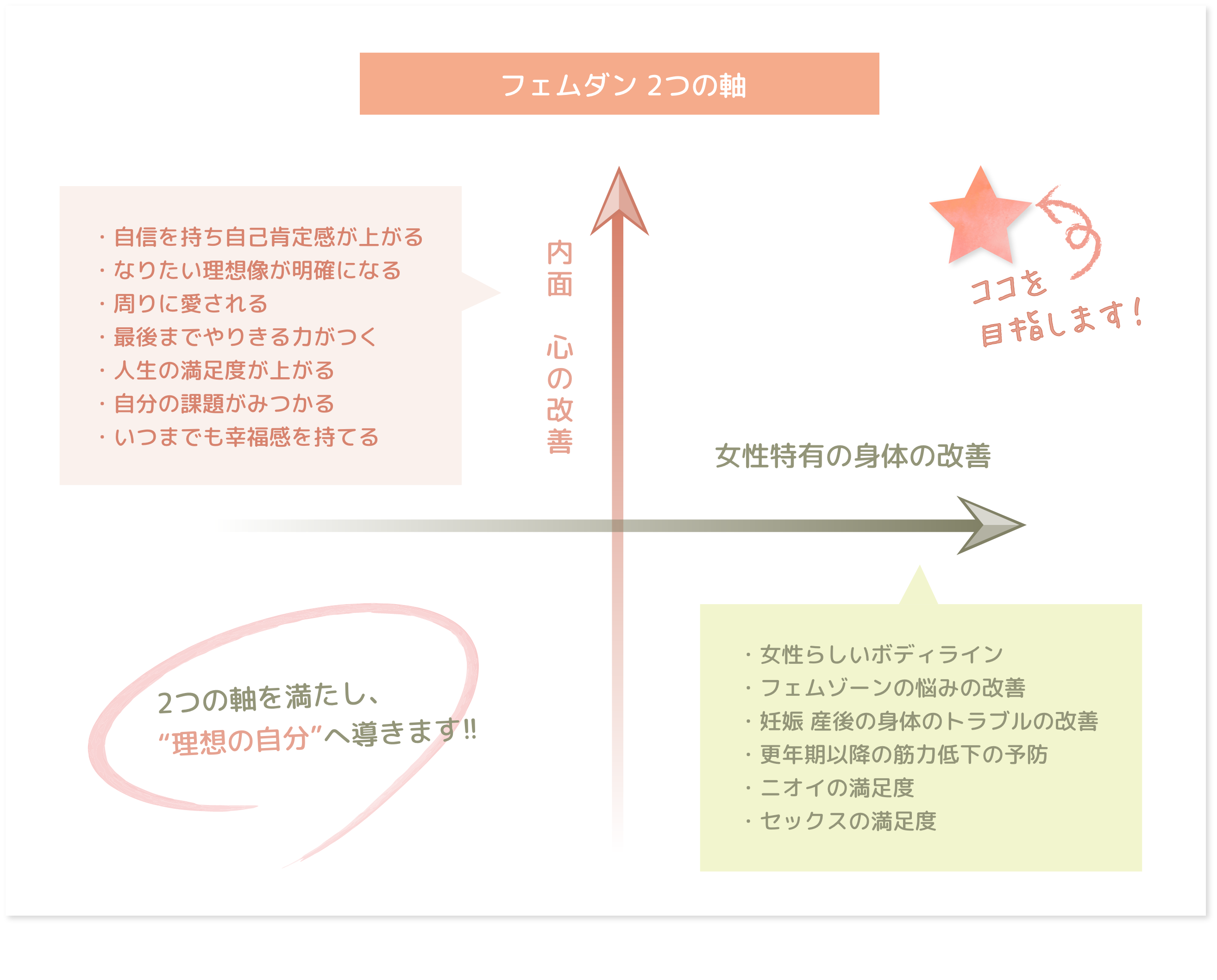 Glad株式会社が開発したフェムゾーンや骨盤底筋群に意識を向けた、腟・ウエスト・ヒップの三点を特に引き締めるトレーニングとダンスです。尿もれ、生理痛、PMS、更年期などの女性特有のトラブルに着目し、医師や理学療法士が監修のもと考案されました。これまでに実施した腟圧測定の結果、最低でも4㎜HG上昇し、全員が女性の平均値である20㎜HGを超える結果となりました。腟圧が上がることによって尿もれを防ぎ、子宮周りの冷えも改善され、生理痛の軽減につながります。
