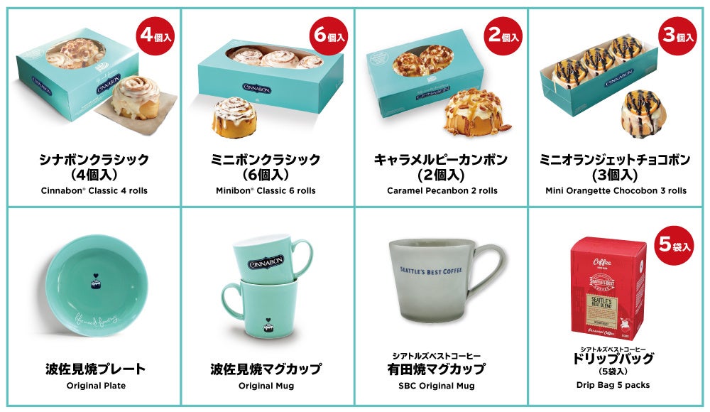 また、「シナボン」と相性が抜群の「シアトルズベストコーヒー」のドリップバッグコーヒーや、シナボングッズも豊富に取り揃えております。スタッフ一同、皆さまのお越しを心よりお待ちしております。