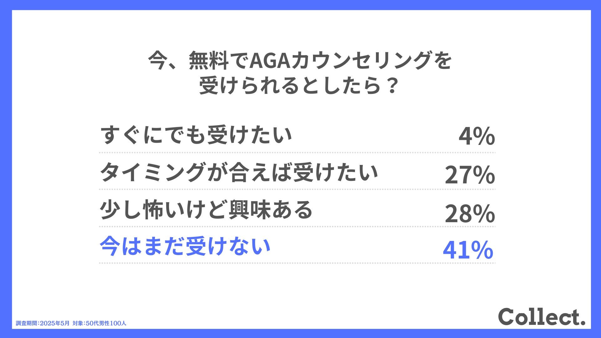 本アンケート結果や画像をご利用いただく際は、引用元として「Collect.(コレクト)URL(https://www.dm-s.co.jp/collect/aga-list/)」へのリンク設置をお願いいたします。