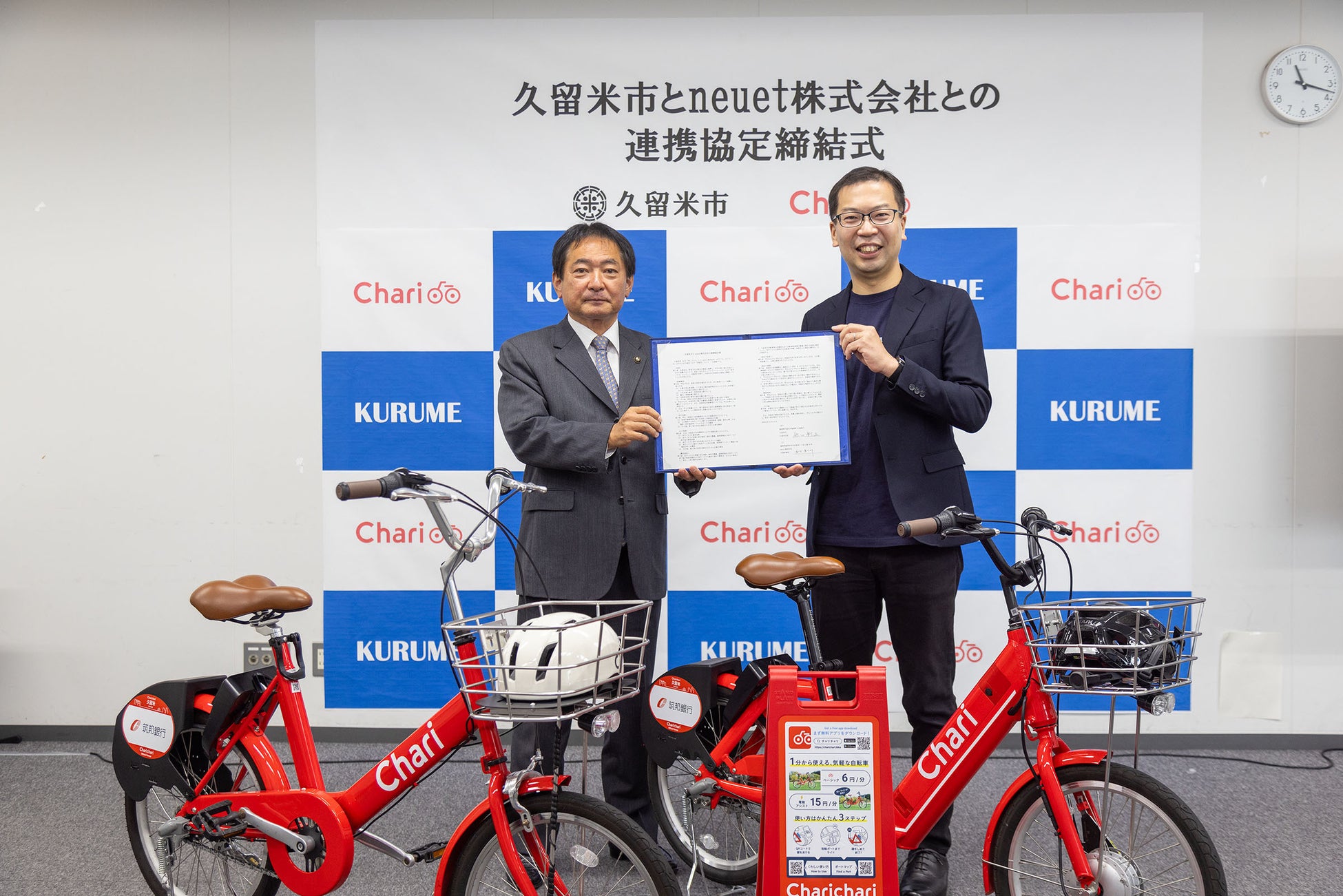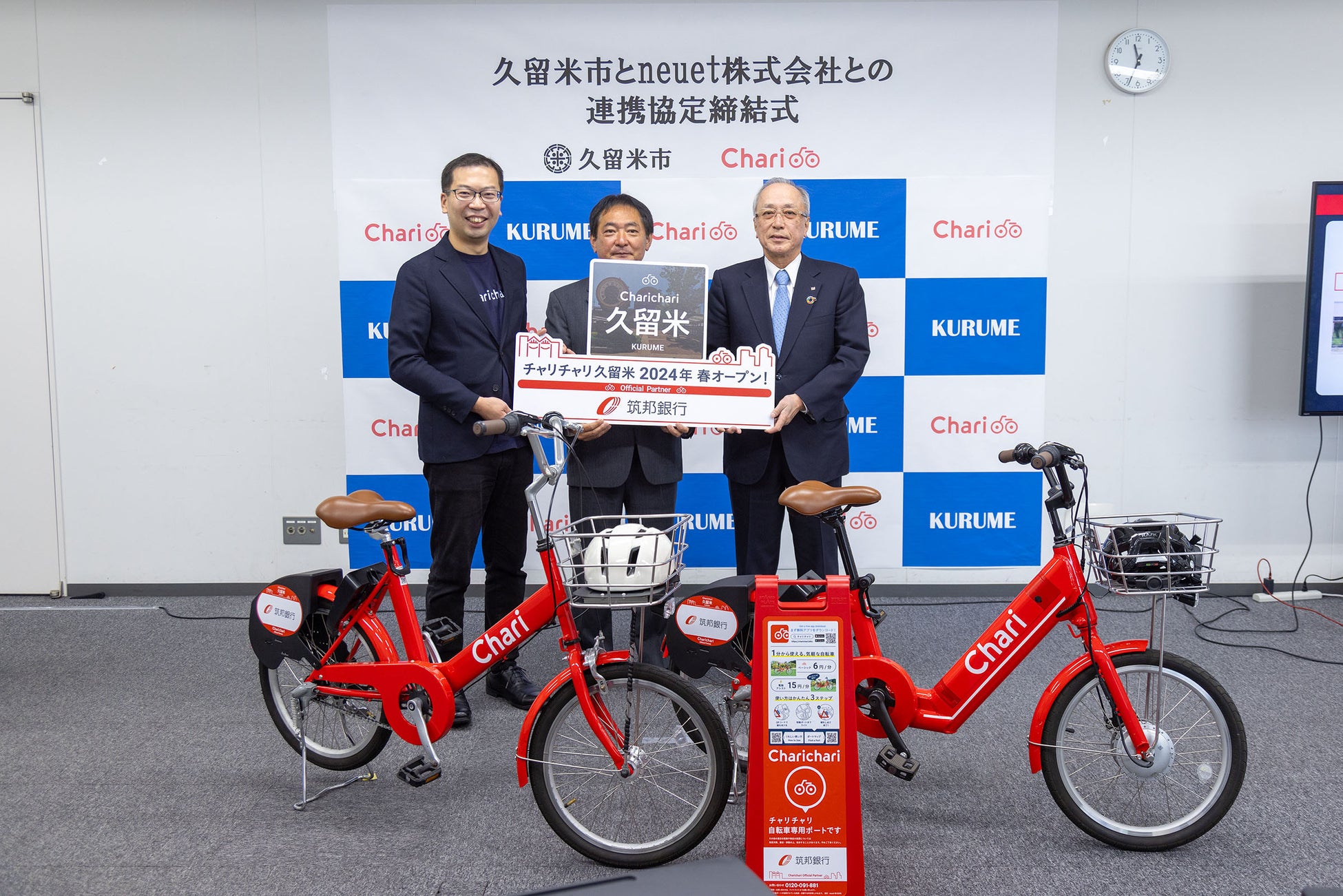 シェアサイクルサービス『チャリチャリ』、福岡県久留米市とシェアサイクル事業実施に関わる連携協定を締結