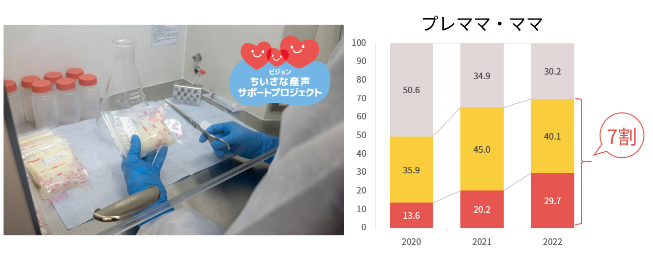 ピジョンが全面的に支援した「日本橋 母乳バンク」の開設から3年目の意識調査を実施 プレママ・ママが「母乳バンクの言葉を知っている」割合は、2020年から20%ポイントアップし、約7割に到達
