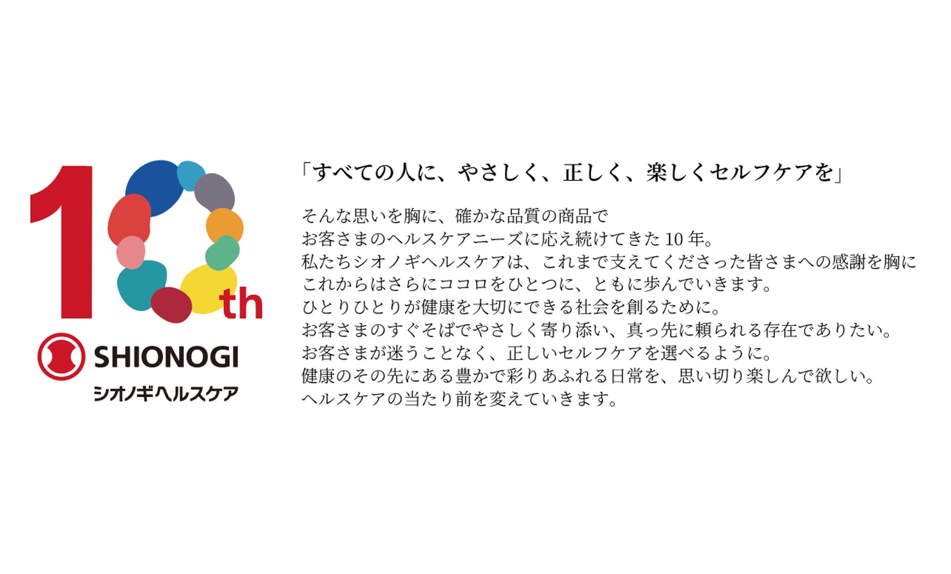そして「すべての人に、やさしく、正しく、楽しくセルフケアを」は、これからの10年も変わらず大切にしていく、私たちの揺るがない想いです。
