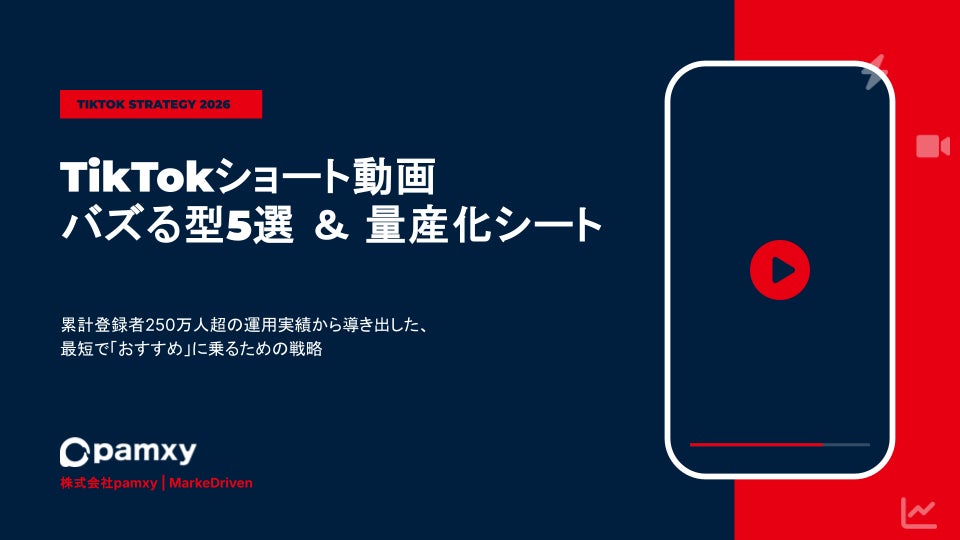 SNSマーケティング支援を展開する株式会社pamxy(本社:東京都港区、代表取締役:西江 健司)は、企業のTikTok運用における「リソース不足」と「企画のマンネリ化」を解決するための実戦ツール『TikTokショート動画・バズる型5選&量産化シート』を本日公開いたしました。