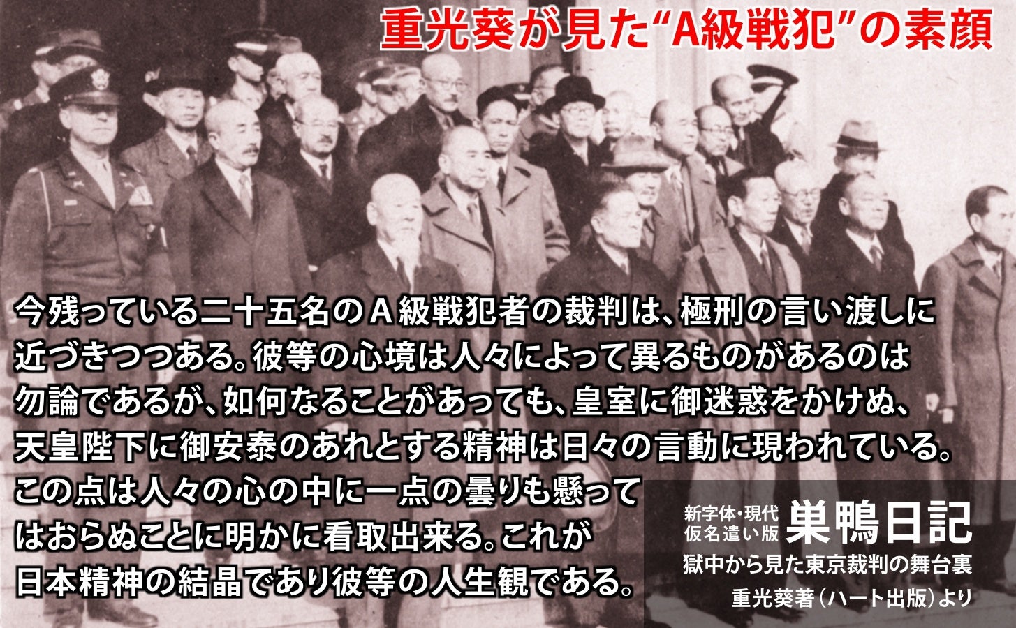 重光を再評価するために、一人でも多くの日本人に巣鴨日記を読んで欲しい。東京裁判が膨大な時間を費やして個別事実の検証を行うふりをしながら、いかに一方的な復讐劇であったか。囚人たちがいかに過酷で屈辱的な環境下に置かれたか。その中にあってなお、くじけることなく、媚びることなく、日本の将来を案じ続け、敵国である欧米からも尊敬と信頼を集め、真摯に弁護された重光の生き様を見れば、その偉大さが理解できるだろう。そして、今こそ重光の精神を復活させることが日本民族の存続に不可欠であることを確信するだろう。