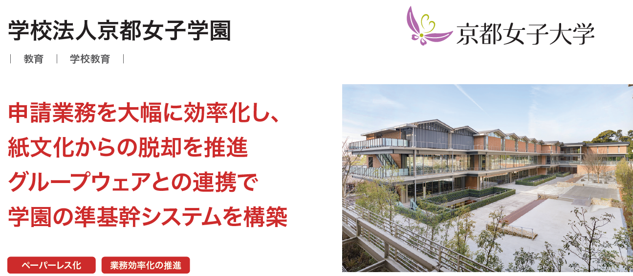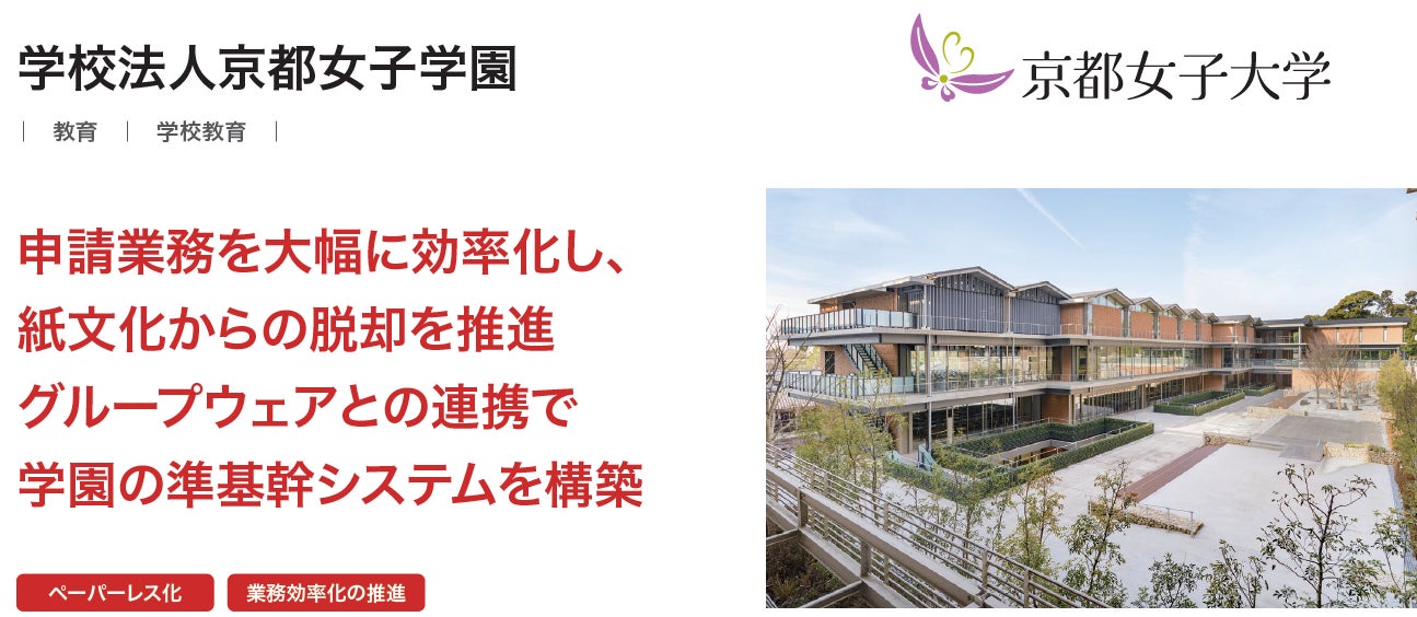 業務手続きの電子化(ワークフローシステム)大手の株式会社エイトレッド(本社:東京都渋谷区、代表取締役社長:岡本 康広 以下、エイトレッド)が提供するワークフロークラウド「X-point Cloud(エクスポイントクラウド)」をご利用いただいている、学校法人京都女子学園(本社:京都府京都市、理事長:芝原 玄記 以下、京都女子学園)の導入事例を公開いたしました。