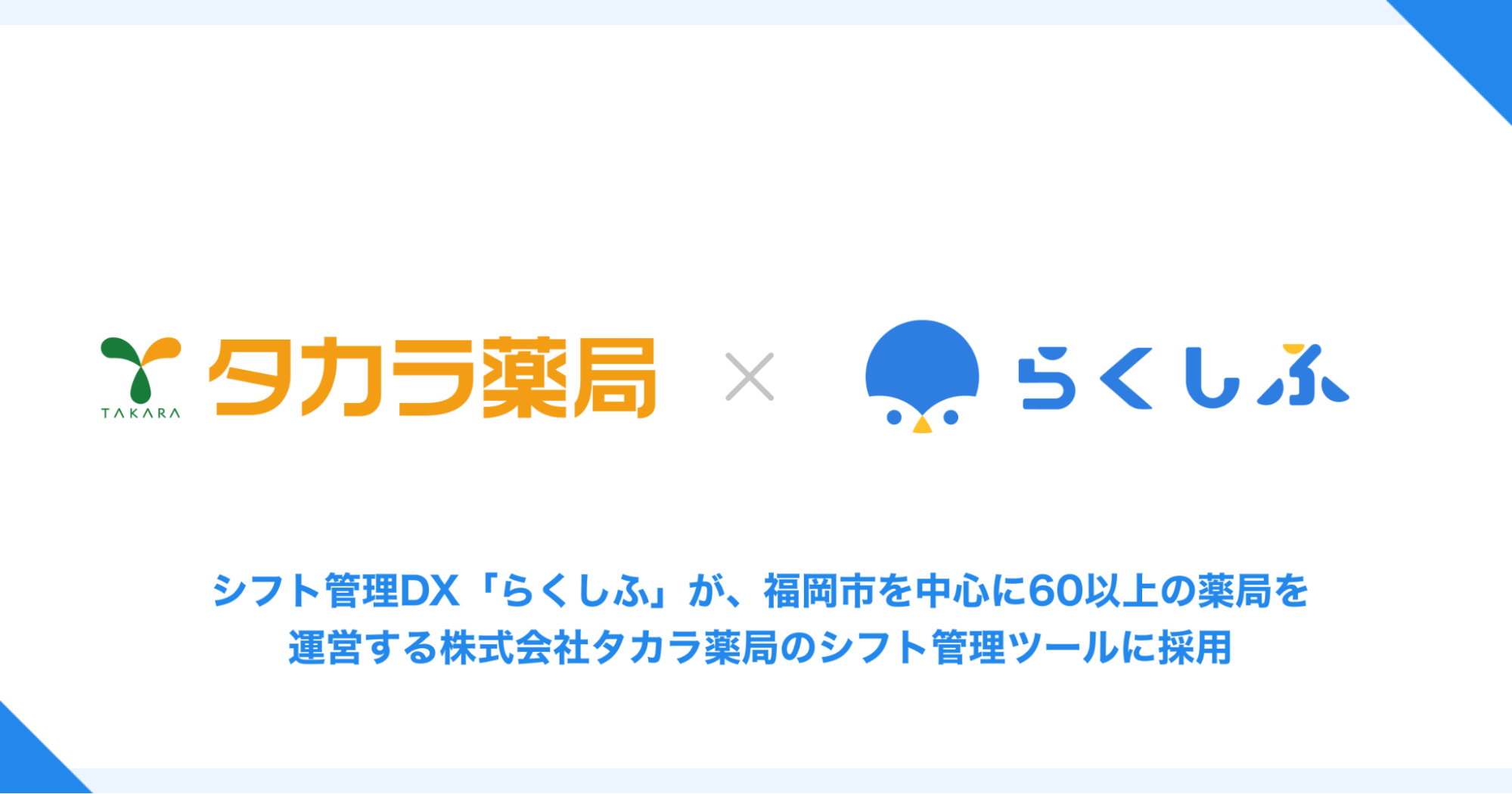 シフト管理DX『らくしふ』、福岡市を中心に国内で60以上の薬局を運営する「タカラ薬局」のシフト管理ツールに採用。