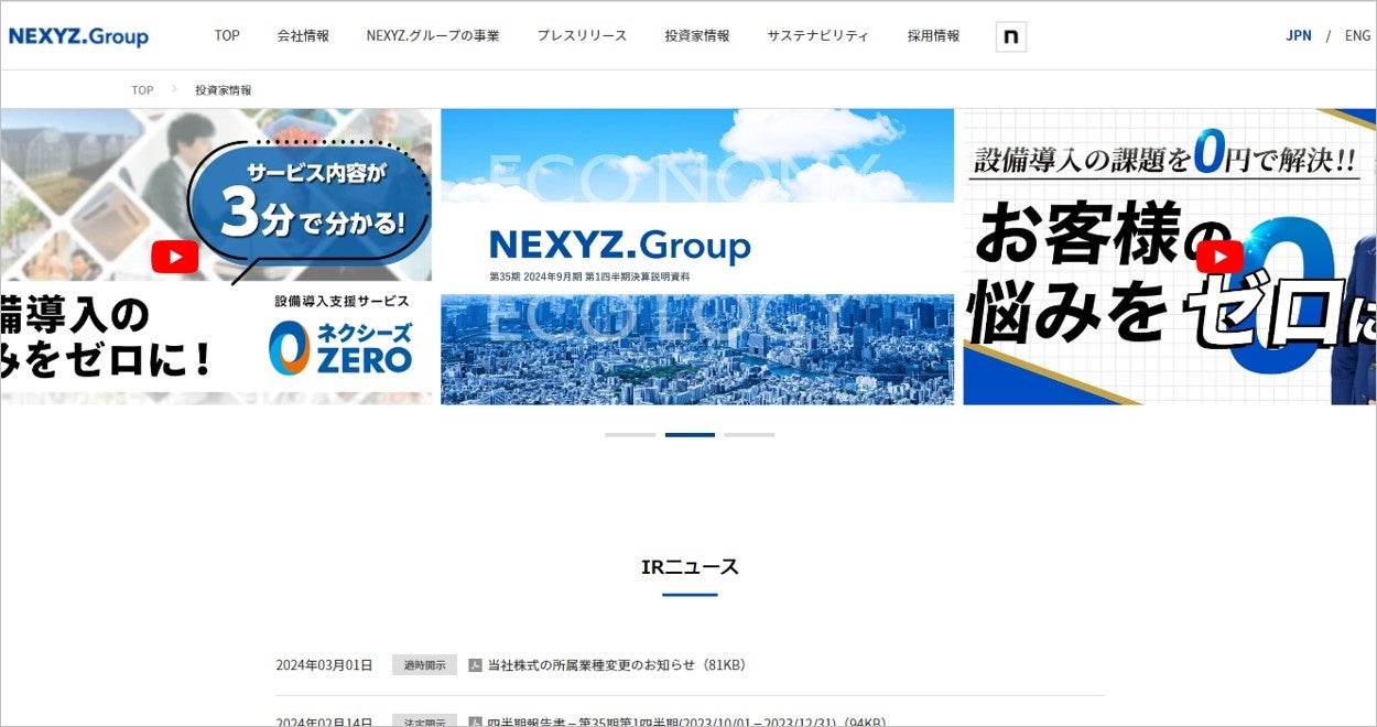 投資家情報ページ : https://www.nexyzgroup.jp/investor/