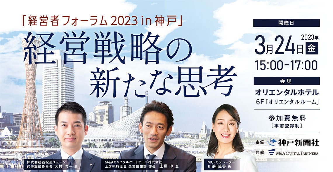 西松屋チェーン社長×M&Aキャピタルパートナーズが登壇する「経営者フォーラム2023 in 神戸」開催のお知らせ