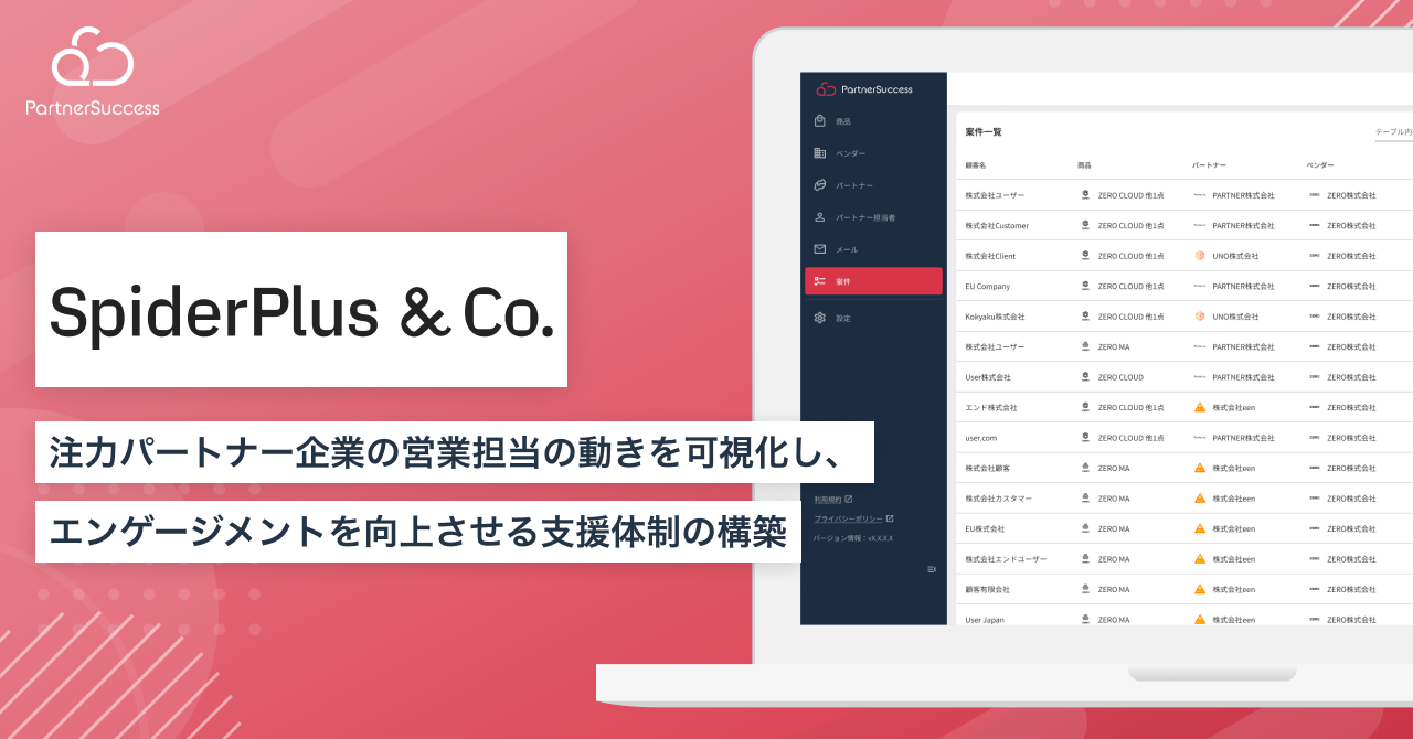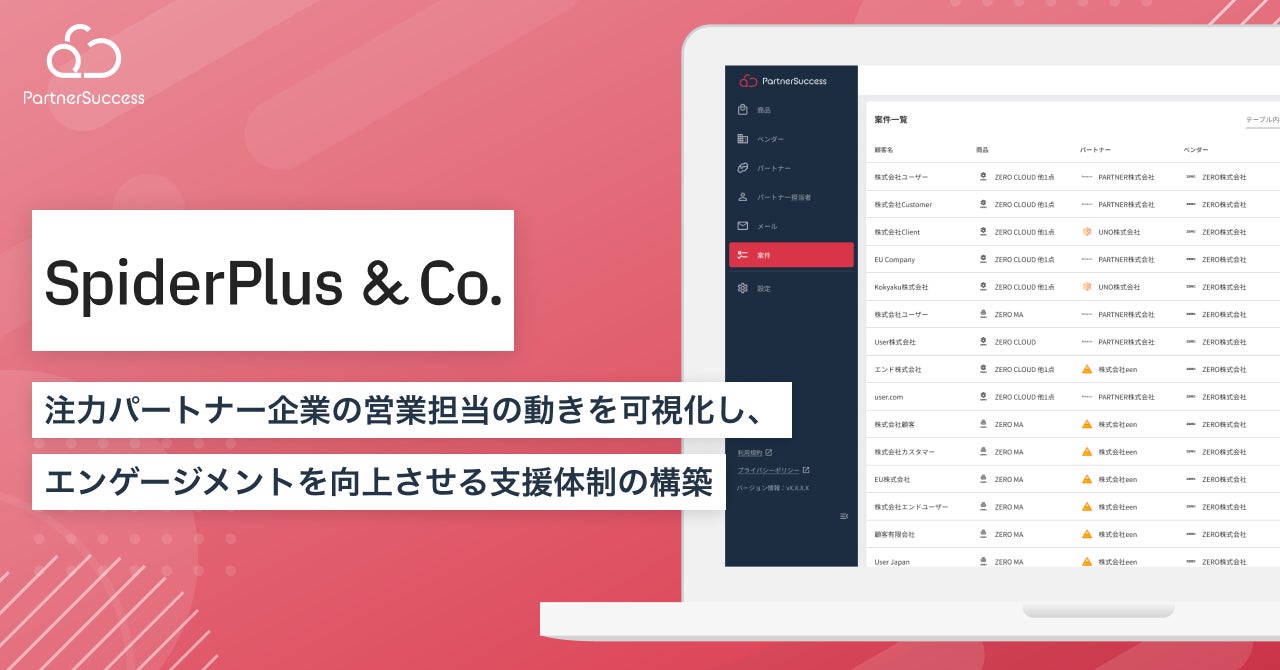 【パートナーサクセス導入事例】スパイダープラス株式会社、代理店連携管理クラウド「PartnerSuccess」導入