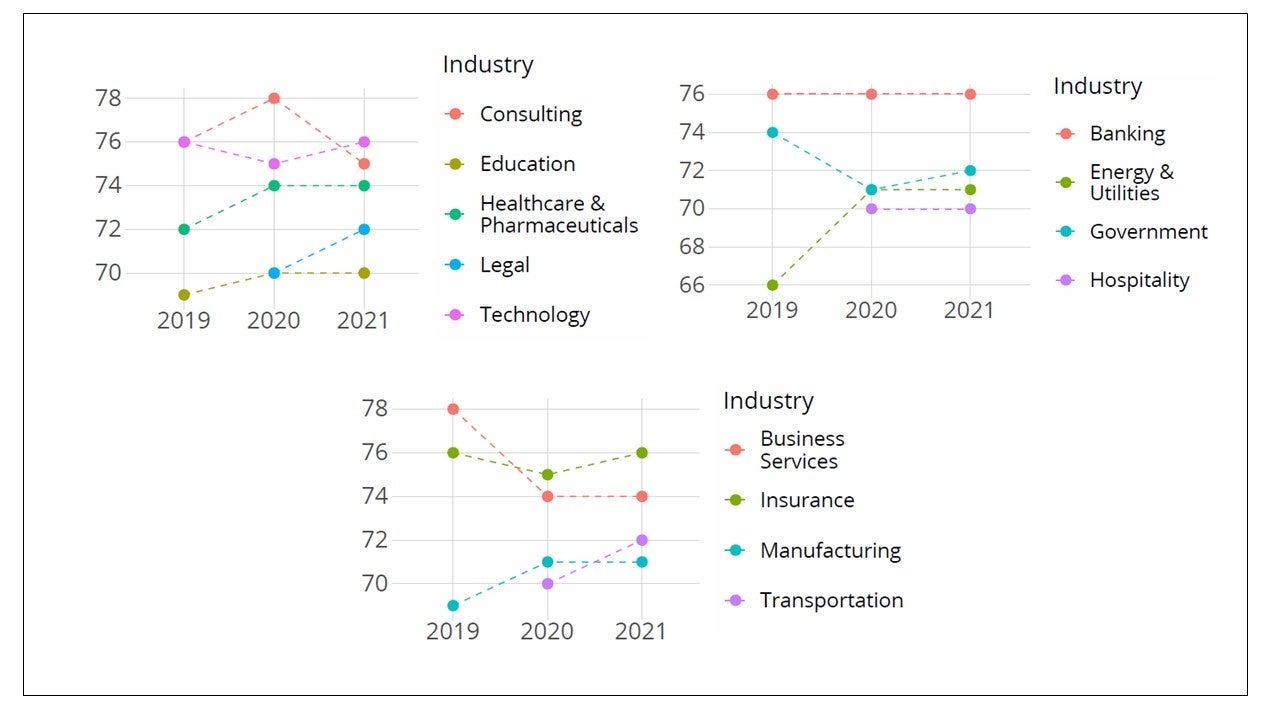 このレポートでは、業界別に踏み込んで、集計分析していますが、業界毎のサイバーセキュリティへの取り組みの特性が反映して、総合スコアの推移は個々に異なっています。総合してみると、上昇傾向が示されています。