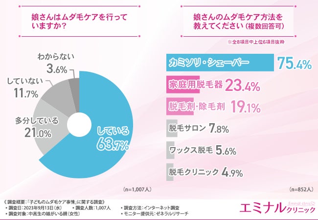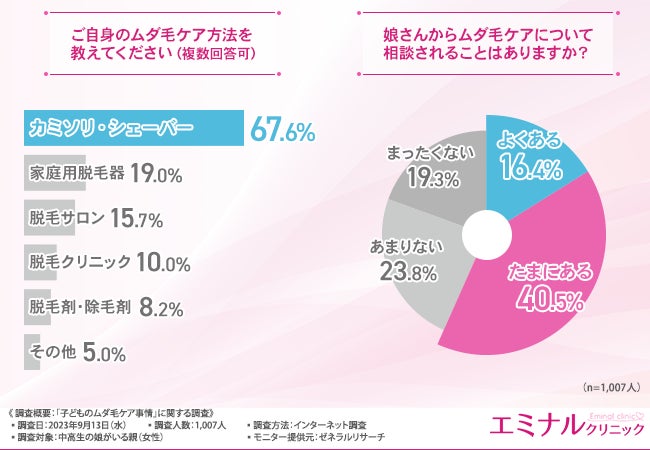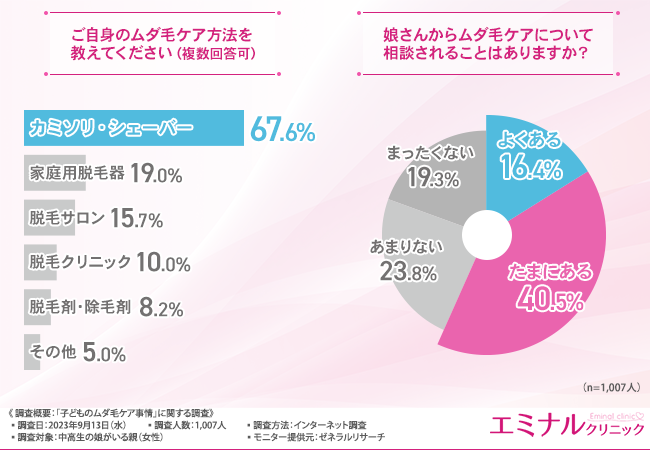 そこで今回、医療脱毛を手掛けるエミナルクリニック(https://eminal-clinic.jp/lp01/?refmedia=11073)は、中高生の娘がいる親(女性)を対象に、「子どものムダ毛ケア事情」に関する調査を実施しました。