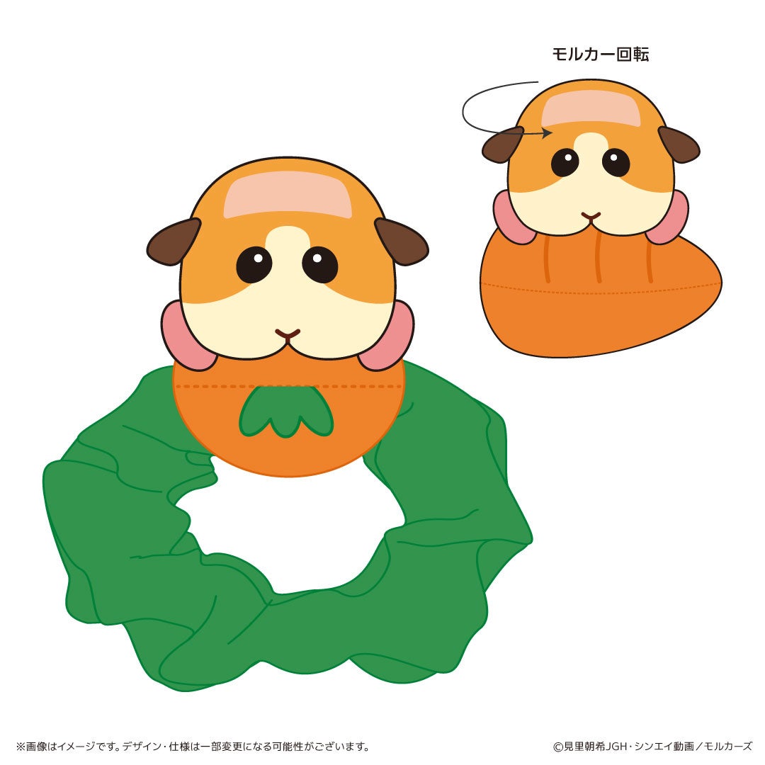 モルカーのキュートなシュシュが登場!にんじんやレタスモチーフの上にちょこんと乗っているポテトとシロモはくるくる回すことができます♪