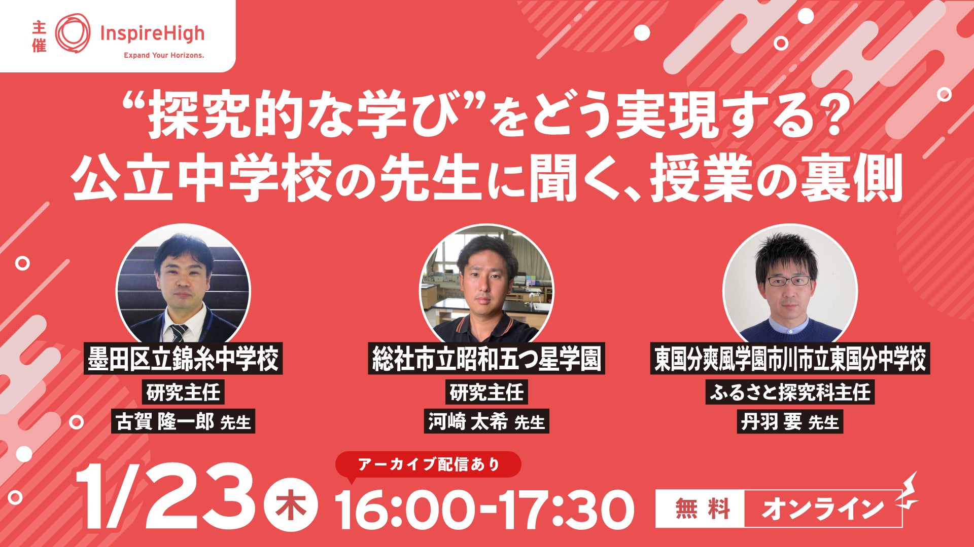 公立中学校の“探究的な学び”の実践例を紹介する中高教員向けセミナーを1月23日(木)に開催