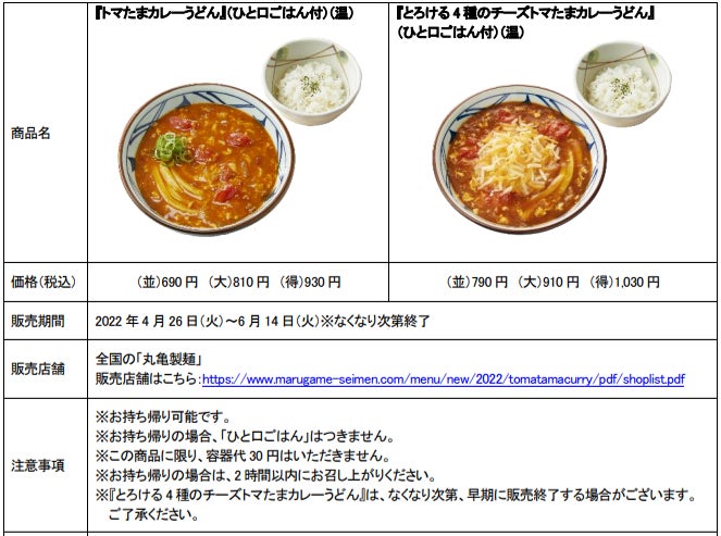 ~2022年5月17日(火)から全国の丸亀製麺にて販売開始~ 『トマたまカレーライス』にぴったり おすすめ「定番うどん」「トッピング」の組み合わせもご紹介!