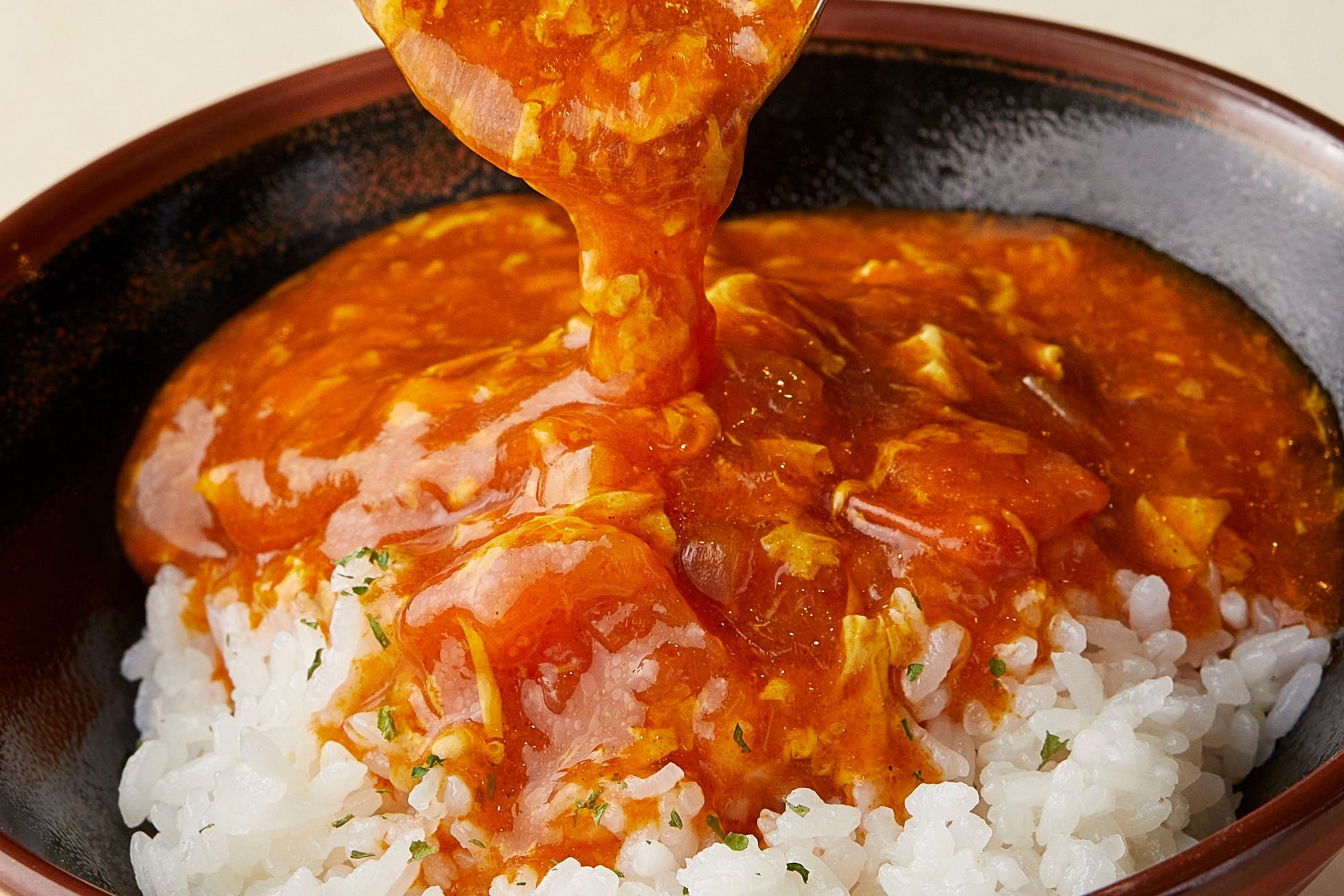 味わいの土台となるのは、おろししょうが、ニンニク、ごま油、そして辛さの決め手カイエンペッパー。選りすぐりの食材で、唯一無二の香りと辛さを実現しました。旨みがぎゅっとつまった丸亀製麺の特製のカレーだしと合わせて、お店で大きめにカットした生のトマトを投入。仕上げに、溶き卵を加えて、酸味と甘みを引き出し、味わい深い一杯に仕上げました。