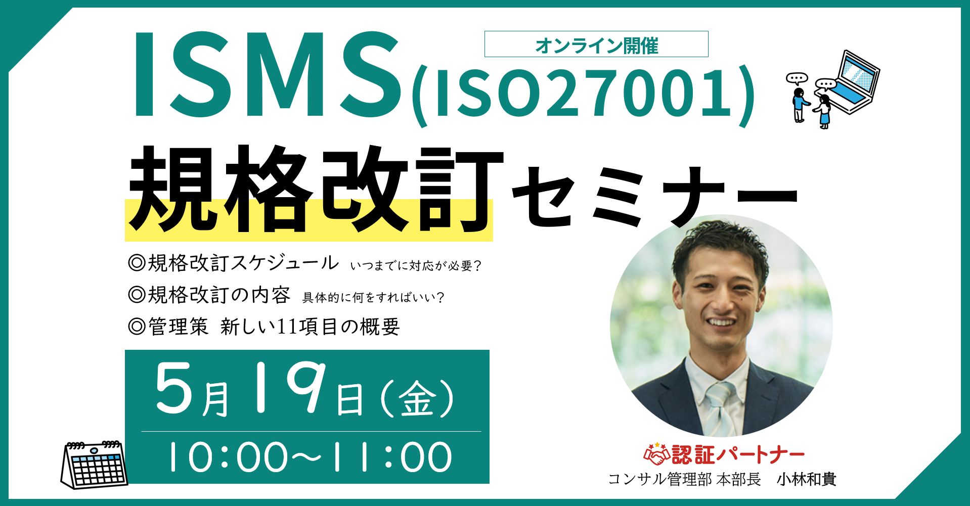 【無料ウェビナー】『ISMS(ISO27001)規格改訂セミナー』5/19(⾦)10:00-11:00開催