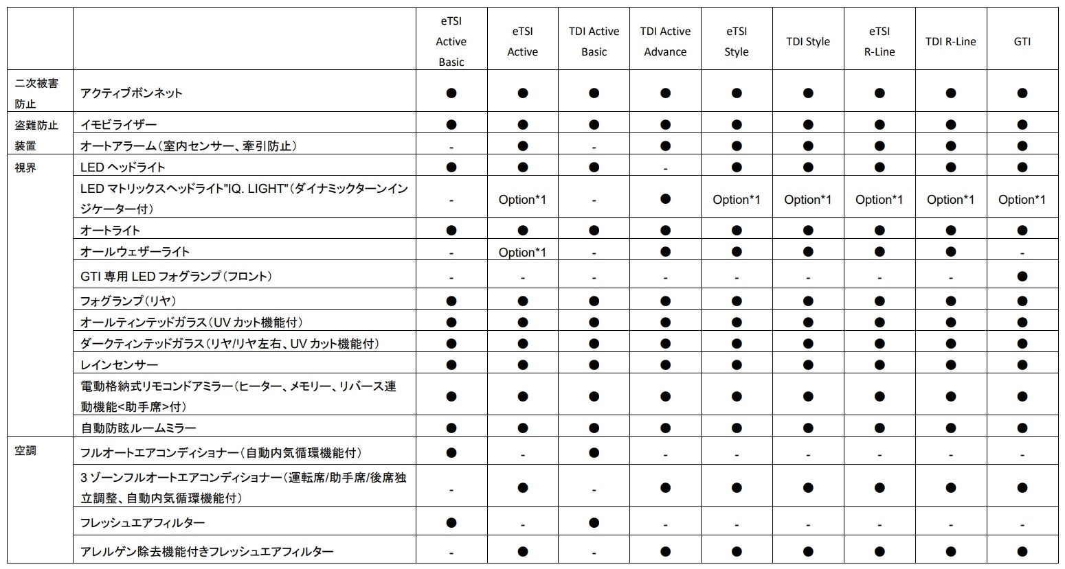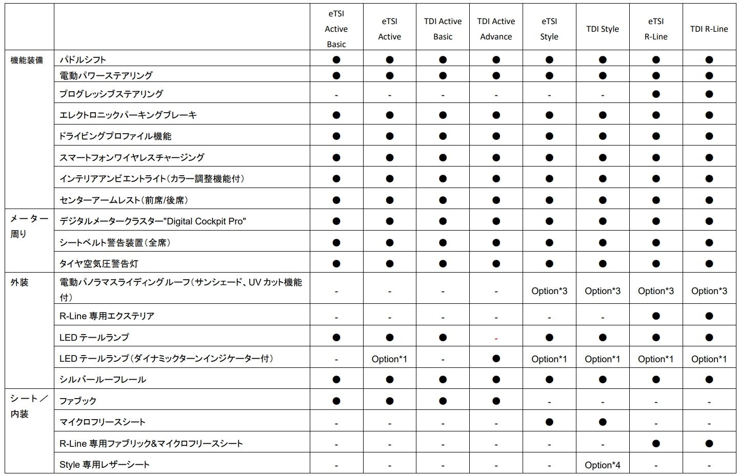 ・ ラグジュアリーパッケージ(eTSI Style / TDI Style / eTSI R-Line / TDI R-Line / GTI)*3