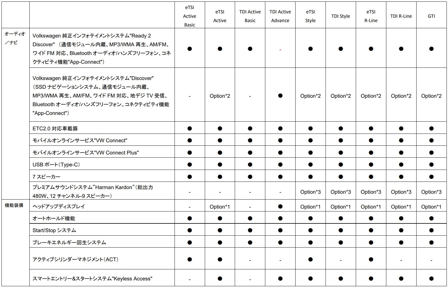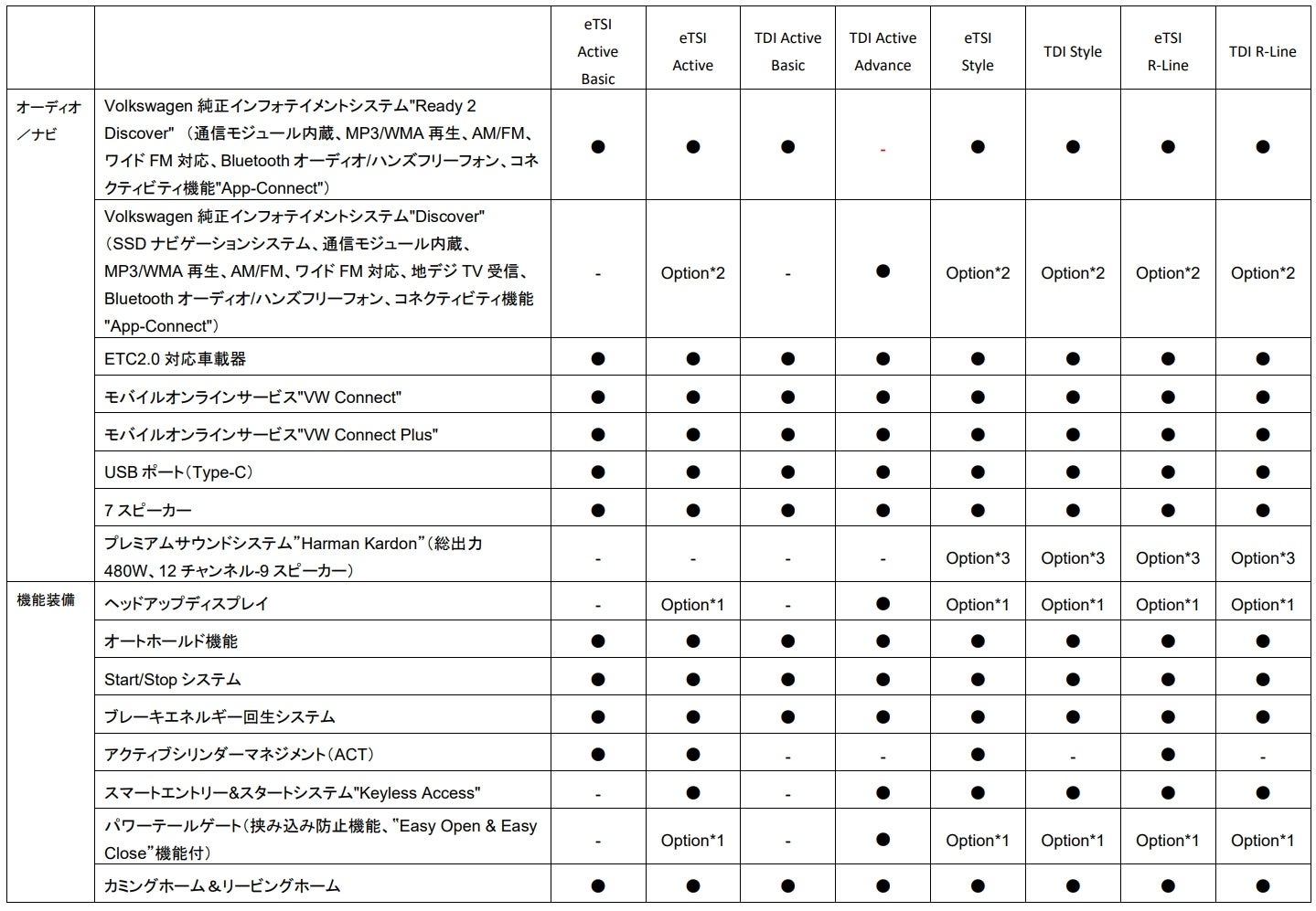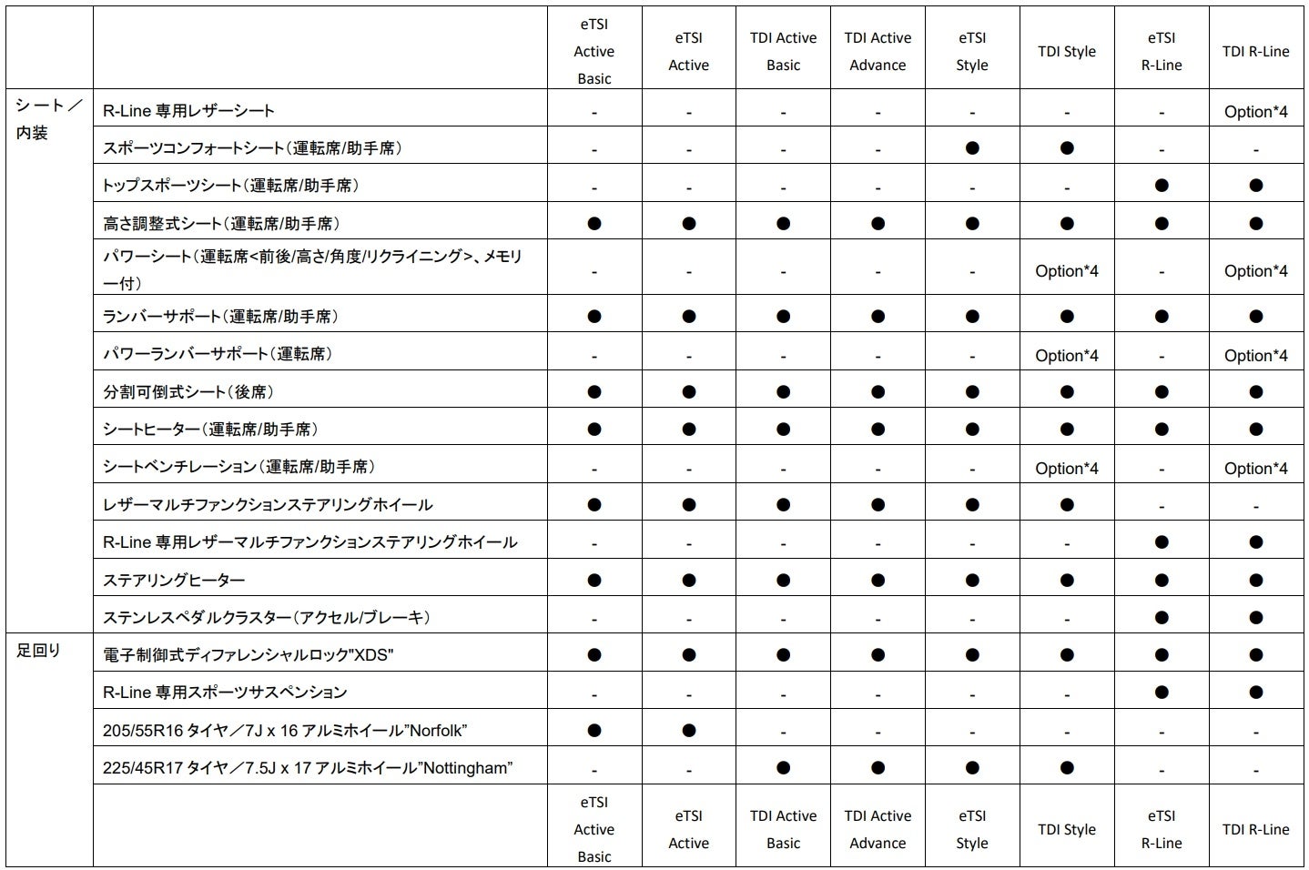 - TDI Active Basic 2.0L TDI(110kW/150PS) / 7速DSG / FWD