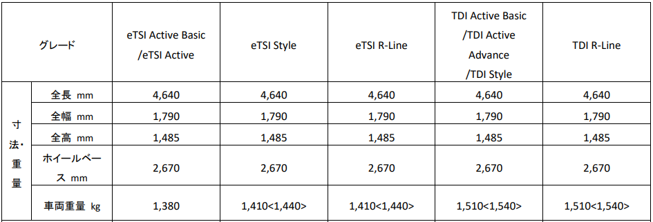 - eTSI Active Basic 1.5L eTSI(85kW/116PS) / 7速DSG / FWD