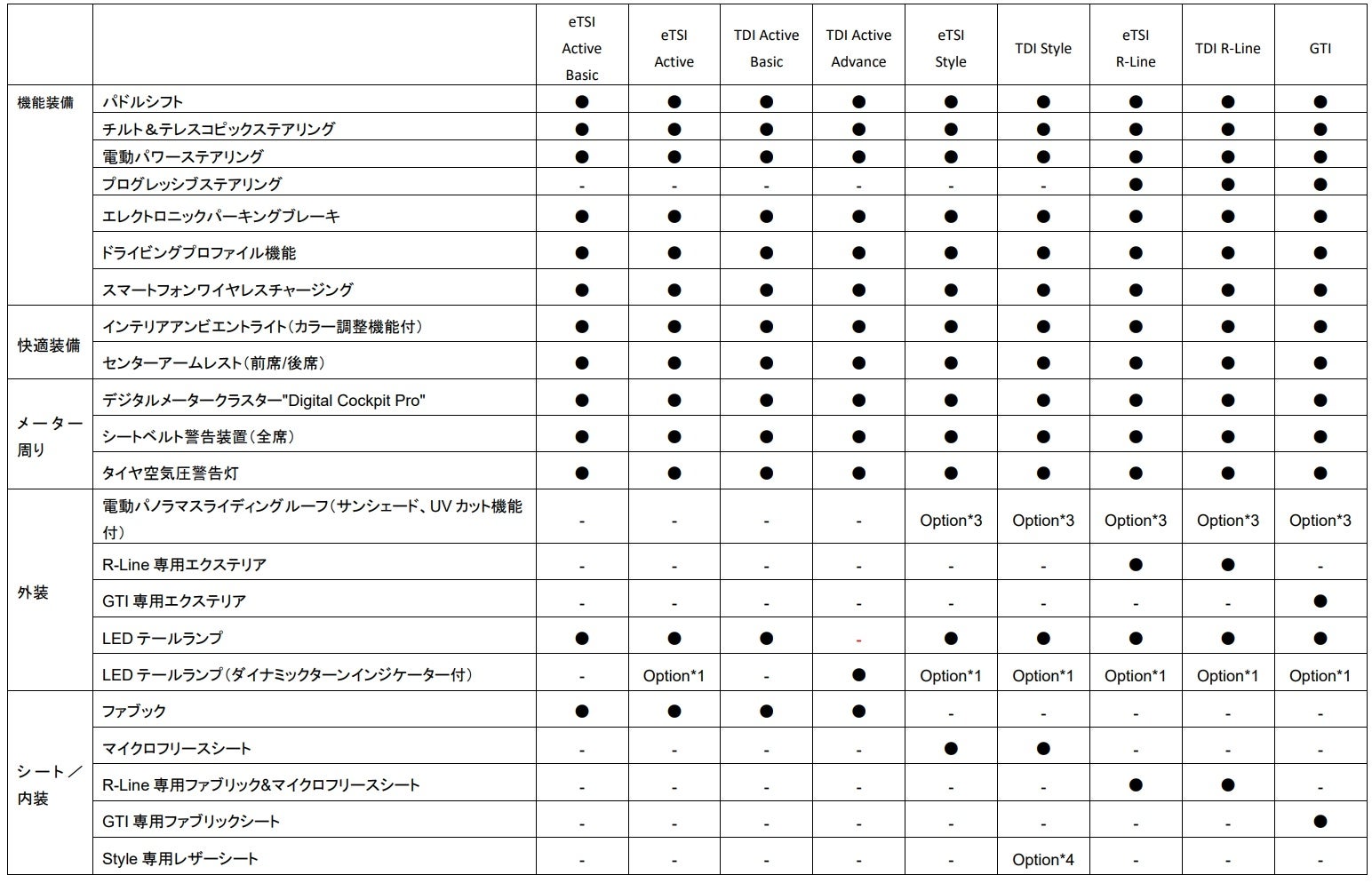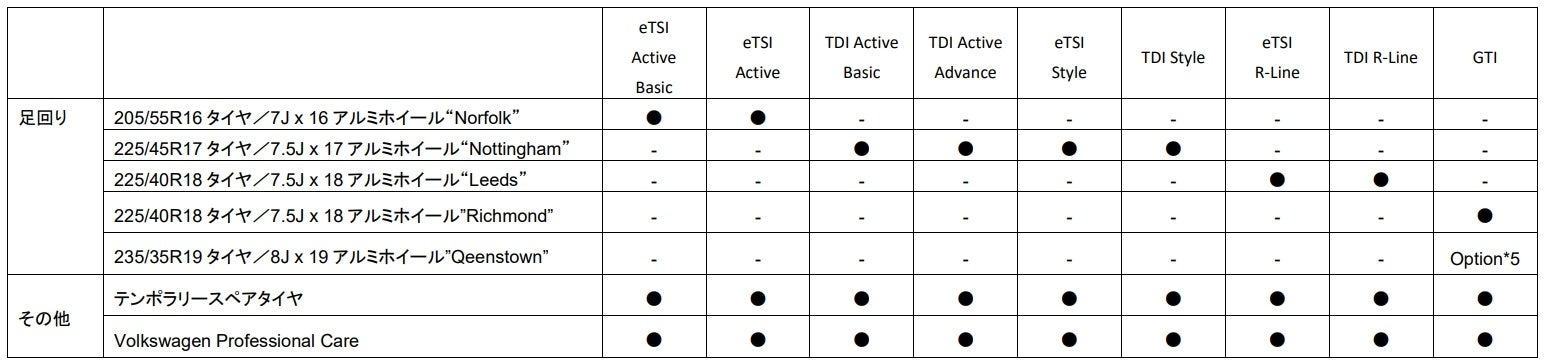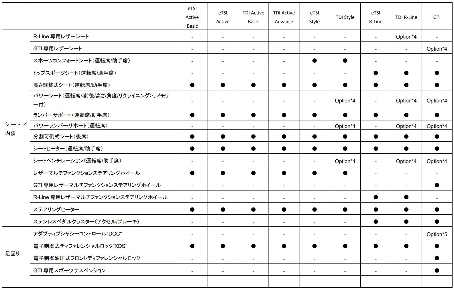 ・ レザーシートパッケージ(eTSI Style / TDI Style / eTSI R-Line / TDI R-Line / GTI)*4