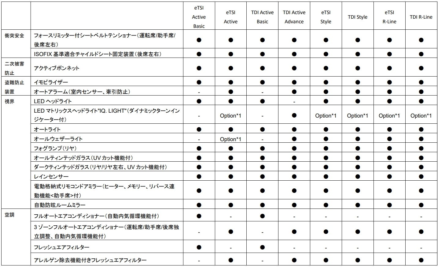 - TDI Active Advance 2.0L TDI(110kW/150PS) / 7速DSG / FWD