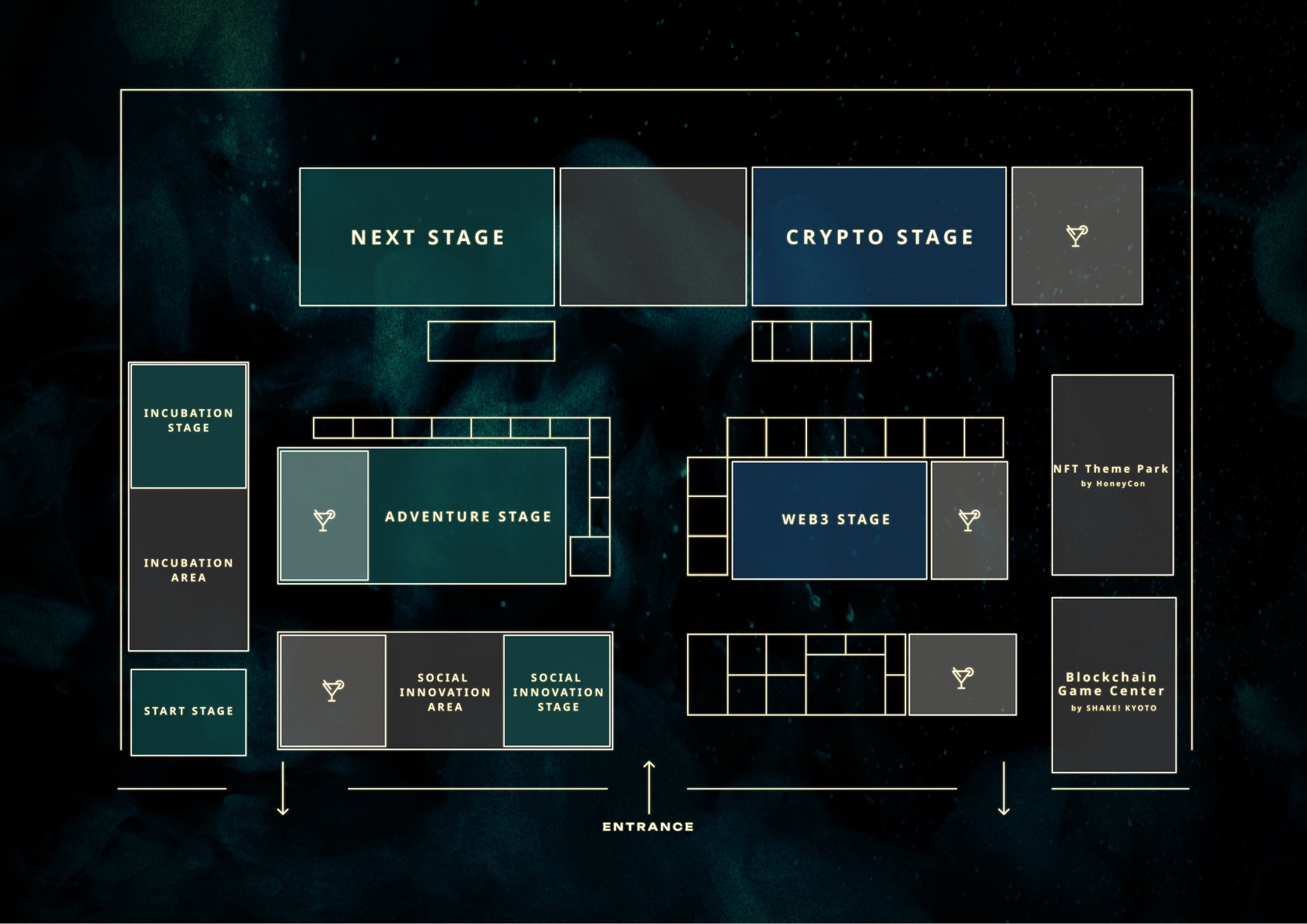 次世代のビジョンを描き出す重要なセッションが多数行われるNEXT CITYの中心地「CRYPTO STAGE」では、音楽、ゲーム、IP、地方創生など、様々な分野でWeb3の応用事例を示し、政府や大企業の動向を共有、日本の未来をともに想像し、スタートアップの存在意義を証明していきます。