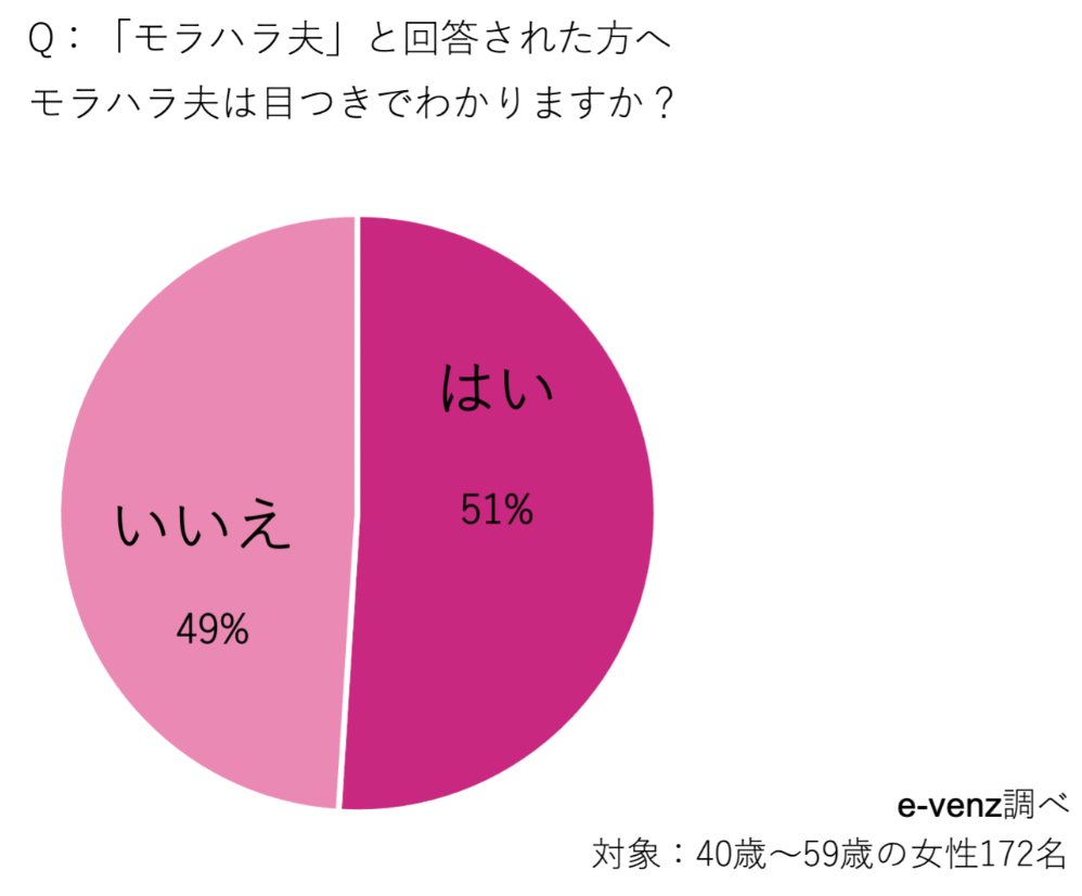 自分の夫は「モラハラ夫」と回答した方に、モラハラ夫は目つきでわかるか調査してみました。
