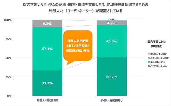 外部人材の活用や探究学習を推進する風土がある学校ほど、教員の課題感が低い傾向