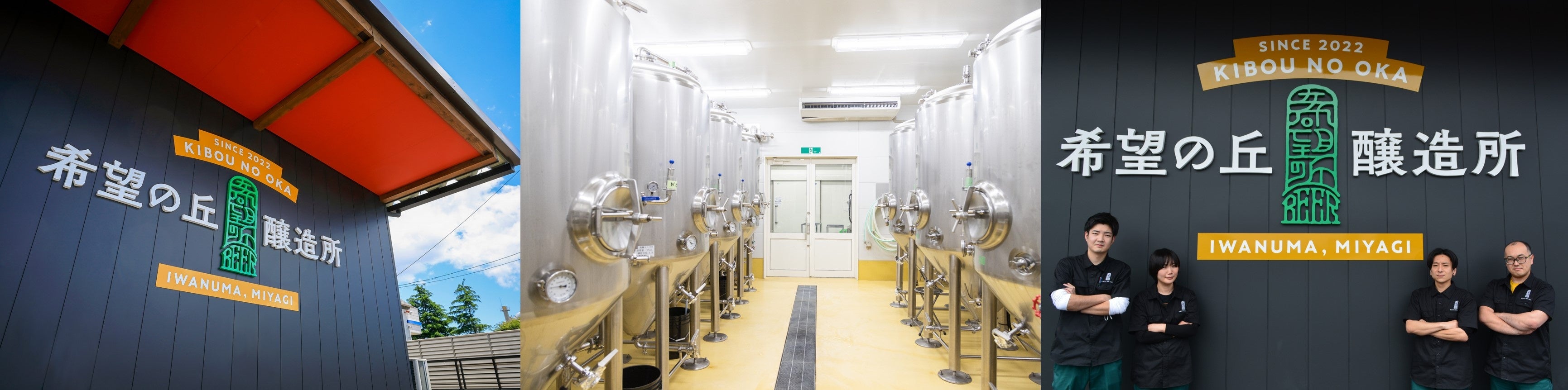 希望の丘醸造所は、仙台名産牛たん焼き専門店「牛たん炭焼利久」が展開する醸造所です。その名称は東日本大震災で津波の被害にあった沿岸部に造成された公園「千年希望の丘」に由来します。被災を経験した宮城岩沼の地から風化させない情報発信のため自由な発想で今一番美味しいビールをお届けします。