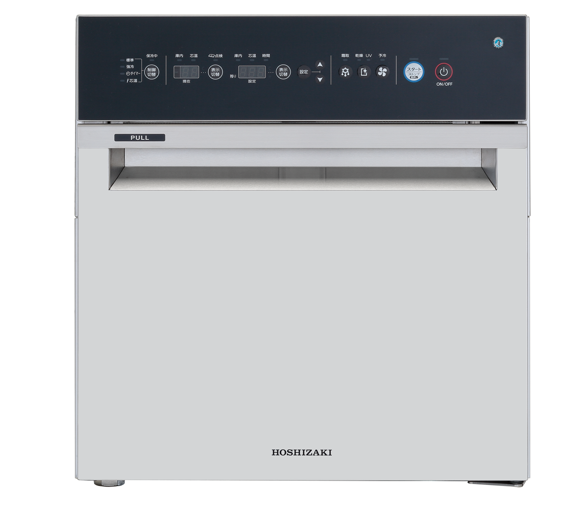 清掃性・衛生面を第一に考え、コンパクトでクリーンな製品を目指しました。冷却機器には必須である吸気用のパンチング穴やルーバー構造ではなく、ドア上部に吸気口とハンドルとして手を入れる形状を兼ねた開口構造を開発しました。機能性とデザイン性を両立させました。 |